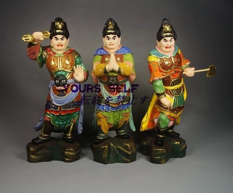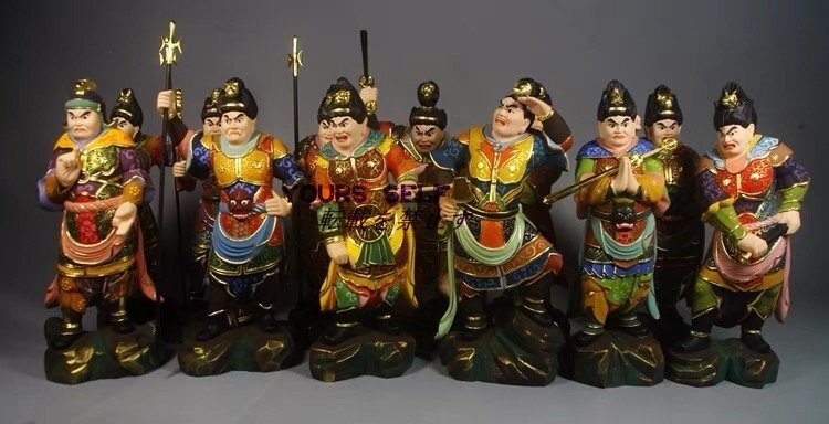 仏像 木彫り 十二神将 立像 セット 天然ツゲ木彫り 仏教美術品 黄楊 柘植 極彩色絵系 (高さ18cm×巾7cm) ◆彫刻仏像