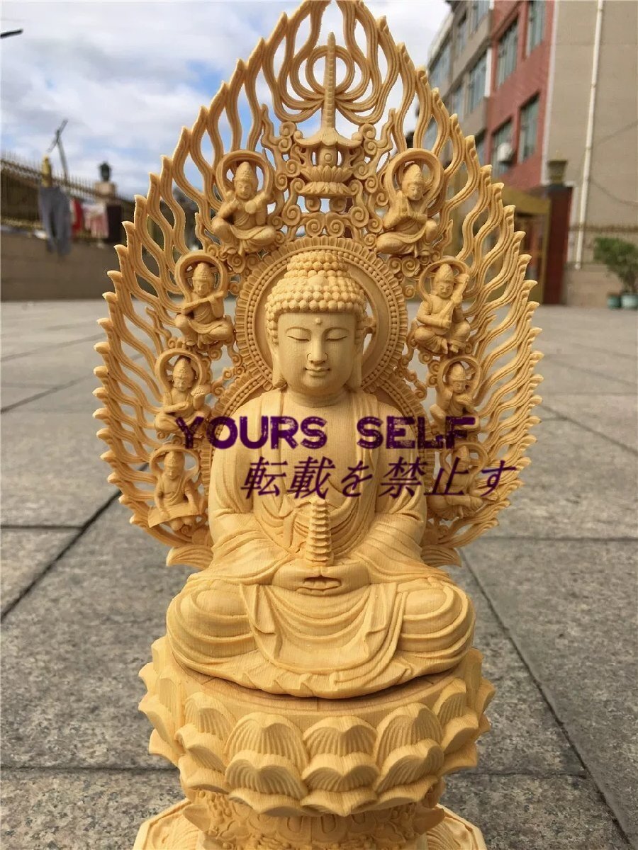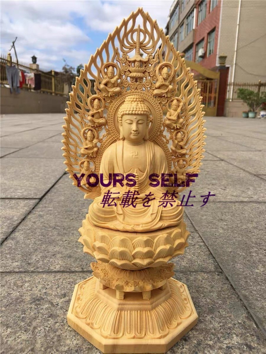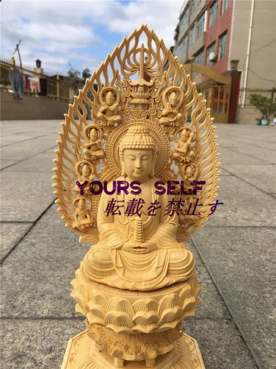 仏教美術 精密彫刻 仏像 手彫り 総檜材 仏師で仕上げ品 文殊菩薩 座像 珍品 高さ29cm
