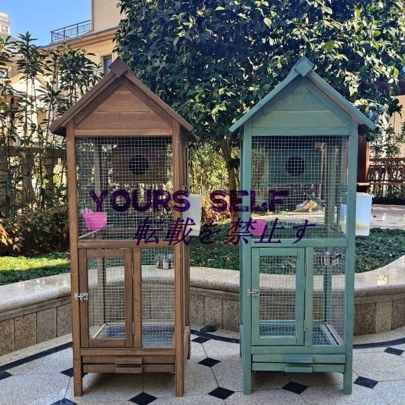 品質保証 鳥籠 大型インコ用 鳥かご 飼育ケージ 松の木 鳥 はと おうむ 小動物ケージ 松の木 組立式 木製 2部屋式 S163
