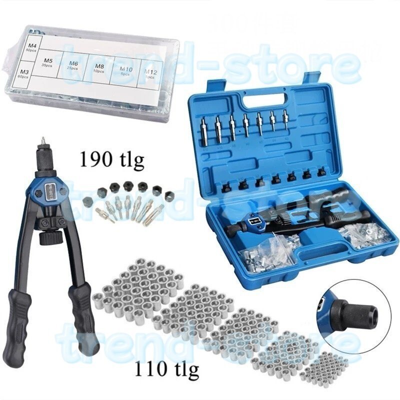ハンドリベッターセット リベット ハンドナッター リベットツール リベット両手式用工具 M3/M4/M5/M6/M8/M10/M12などに対応 DIY (110pcs)