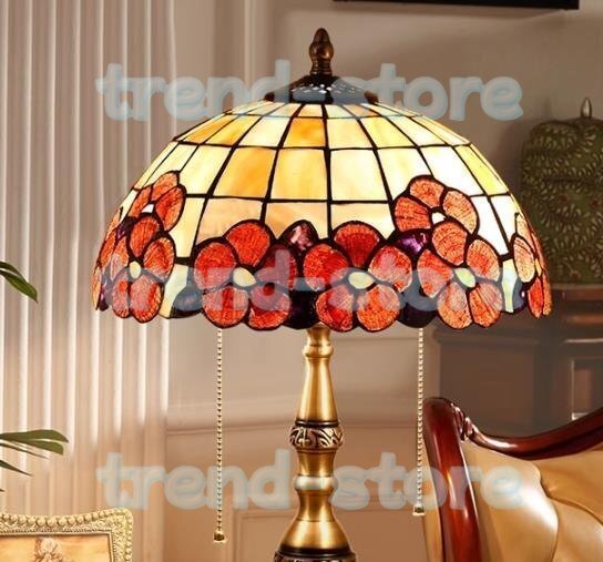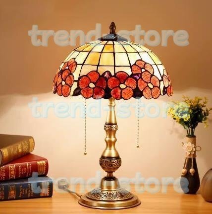稀少★芸術貝殻ステンドランプ ステンドグラス アンティーク 花柄 レトロな雰囲気がおしゃれ ティファニー 銅製デスクライト照明