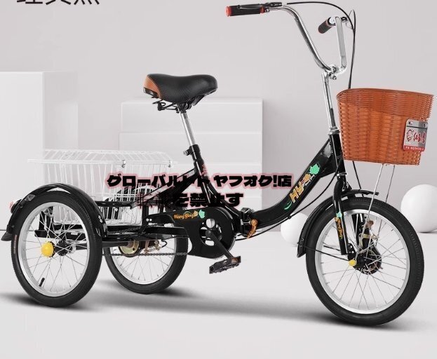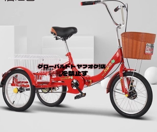 人気推薦☆大人用三輪車 大型バスケット付き リクリエーシ 高齢者用ペダル自転車 16インチホイール バスケット付き折りたたみ式三輪車 126