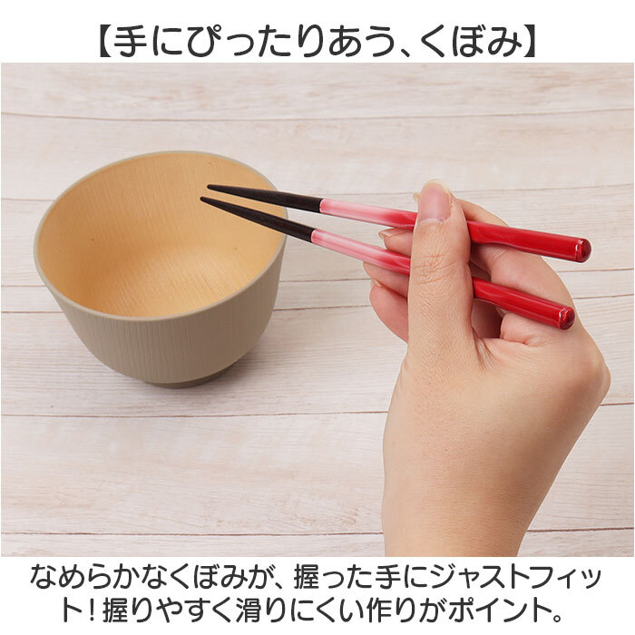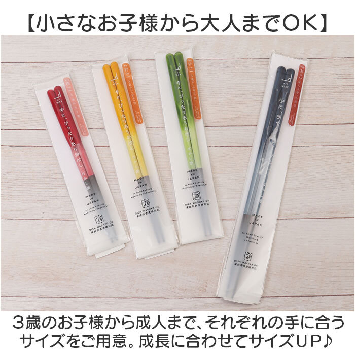 | 商品説明 | ・・【手にぴったりあう、使い心地♪】 ・3歳からOK!成長に合わせてサイズをチョイス! 「FIT 箸」が登場。 ・【小さなお子様から大人までOK】 ・・3歳のお子様から成人まで、それぞれの手に合うサイズをご用意。成長に合わせてサイズUP♪ ・【手にぴったりあう、くぼみ】 ・なめらかなくぼみが、握った手にジャストフィット!握りやすく滑りにくい作りがポイント。 ・【食事をもっと楽しく大切に♪】 ・毎日使うお箸にこだわるだけで、いつもの食卓がもっと豊かに♪見た目にも美しいフォルムが魅力 ・【お子様の食育にも◎】 ・自分にぴったりで使いやすいMY箸を持つことで、食べることがもっと楽しくなること間違いなし☆ ・【MADE IN JAPANの品質】 ・グラデーションがきれいな、ぼかし塗りを採用。天然木を使ったナチュラルな風合いがポイント ・【家庭用食洗機対応◎】 ・忙しい毎日にぴったり寄り添う、イージーケアタイプ。ラクチンだから毎日大活躍! ・【選べるサイズ&カラー☆】 ・家族でそれぞれお気に入りをチョイス!自分用のお箸を選んで、食事を楽しもう。 ・【サイズ展開】 ・・15センチ:3歳から4歳 17センチ:5歳から小学生(低) 19センチ:小学生(高)から中学生 21センチ:中高生から成人女性 |
