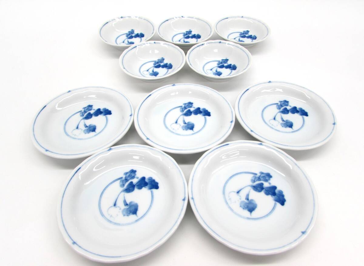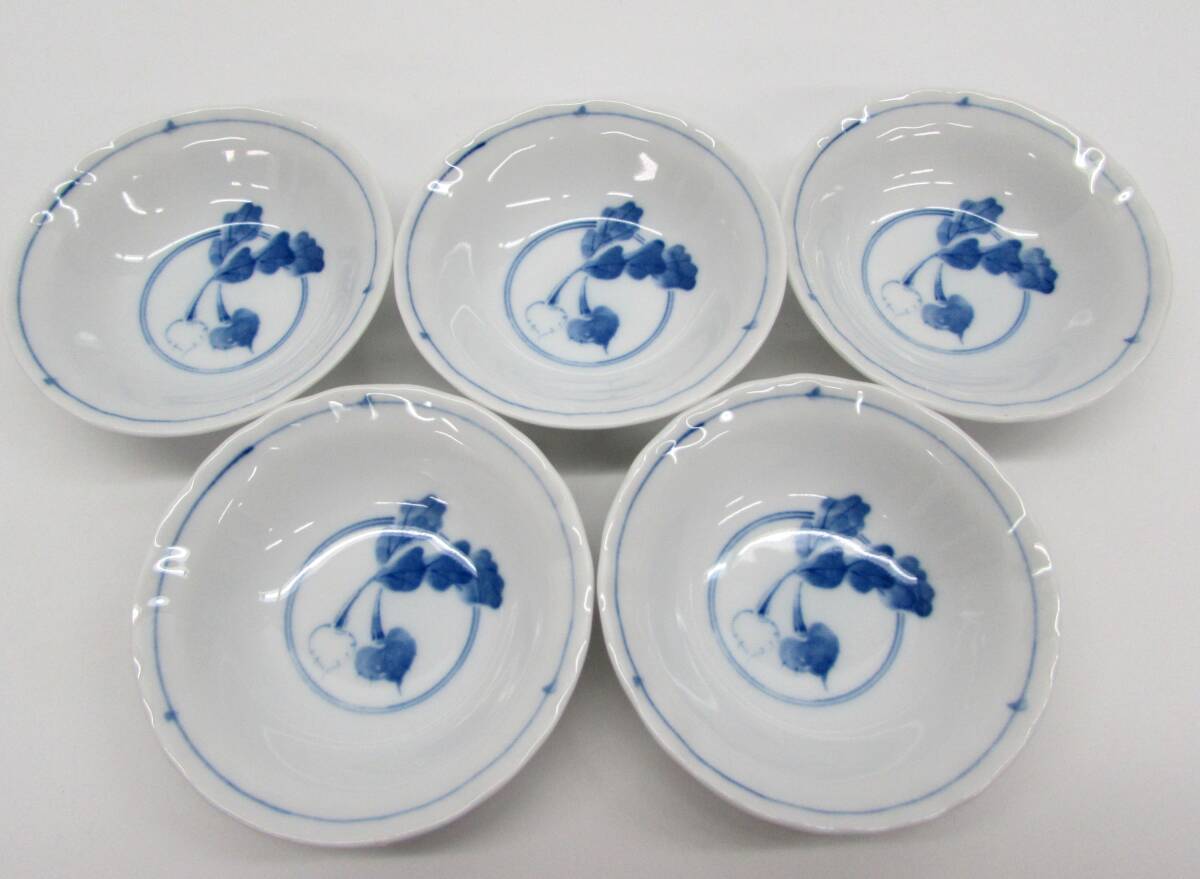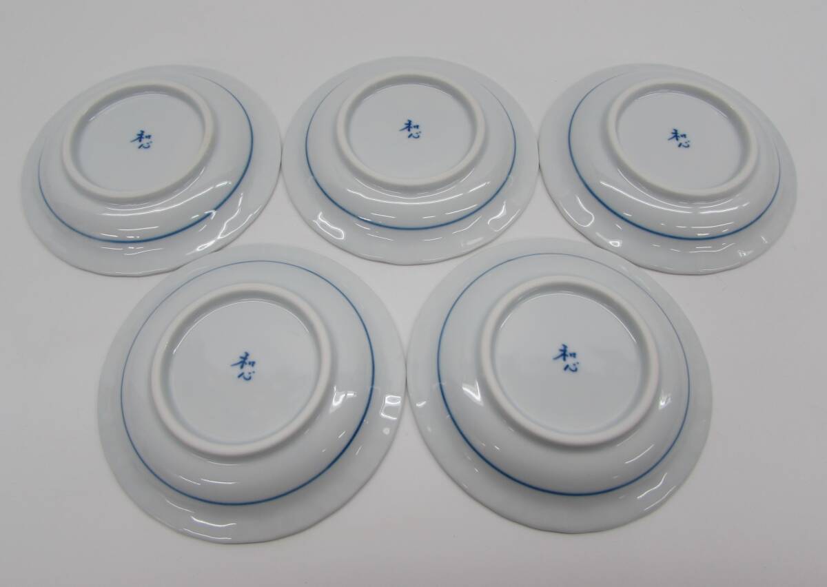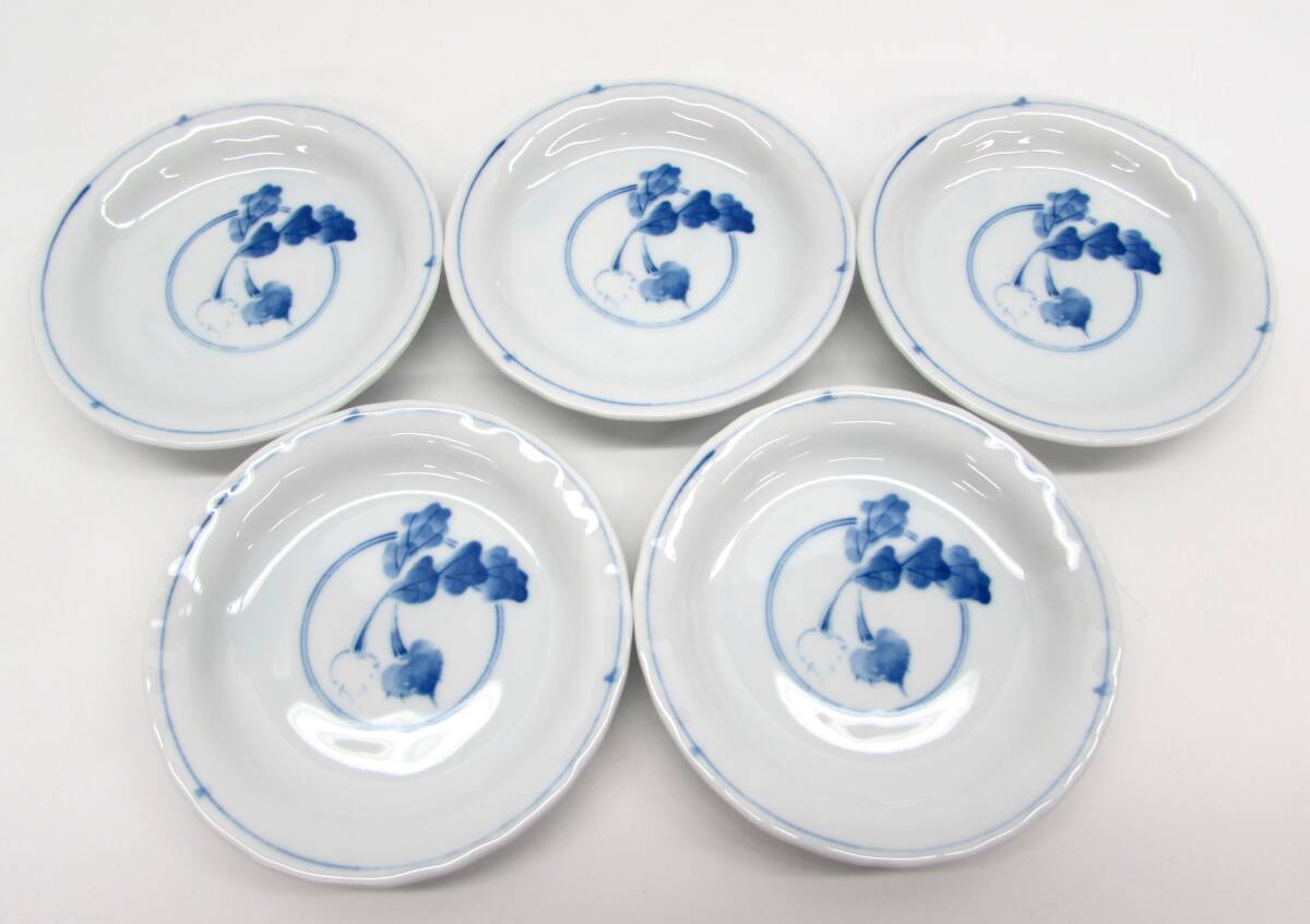 | 美品 和心 小皿 小鉢 盛鉢 直径9.8㎝ 高さ2.5㎝ 5客 平皿 しょう油皿 薬味皿 お新香皿 直径12㎝ 高さ2㎝ 5枚 和皿 和食器 陶器 かぶ図 染付 |