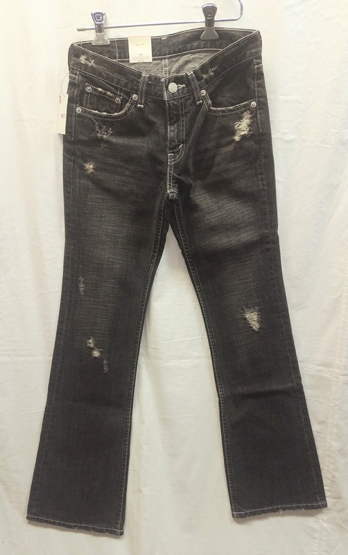 リーバイスのレディースジーンズです。 W537-0911 W27 中国製 新品 綿:100% (27インチ表示の平置き実寸です)ウエスト:70cm 股上:20cm股下:79cm 裾幅:22cm ワタリ:25cmリーバイスジャパンの商品です。ブラックデニムをウォッシュしてダメージ加工してあります。股上浅めのフレアージーンズです。平置きで実寸を測ってあります。定価¥9900です。水曜日は定休日ですので、連絡、発送等の取引業務は 出来ませんのでよろしくお願い致します。 定休日以外連絡可能な時間は、11時~18時迄です。