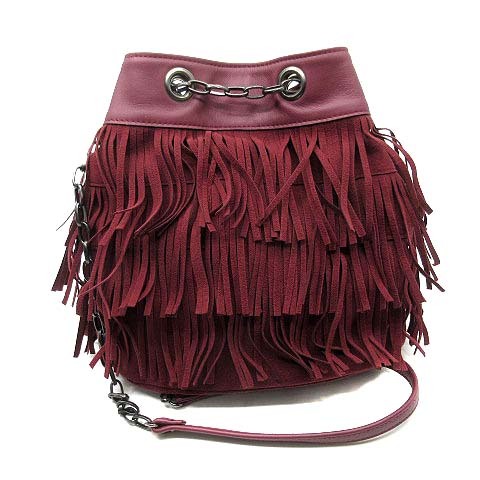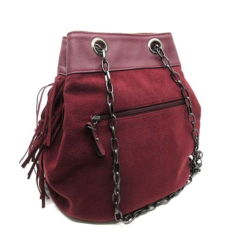 サロンドアルファード SALON DE ALFURD フリンジ チェーン ショルダーバッグ 巾着 ボルドー レディース