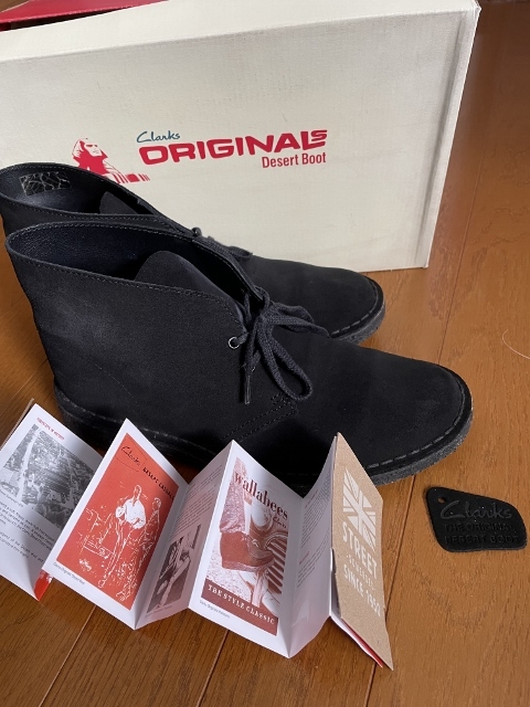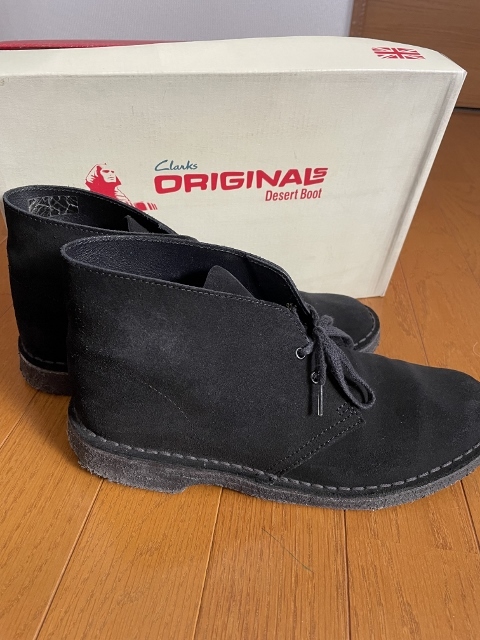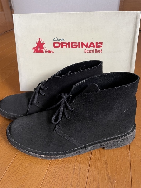 良品 クラークススエードデザートブーツ ブラック 25.5cm