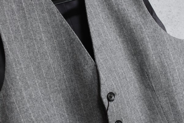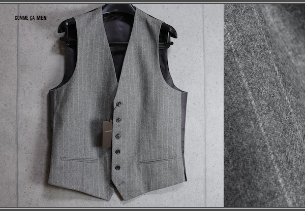 コムサ系のメインブランド、コムサメン(COMME CA MEN)の厚手 フランネル チョークストライプ ジレ。