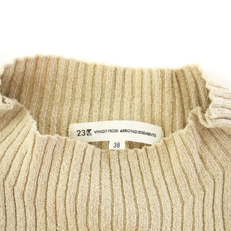 23区 オンワード樫山 サマーニット セーター ノースリーブ リブ リネン シルク ハイネック 38 M ベージュ /TK レディース