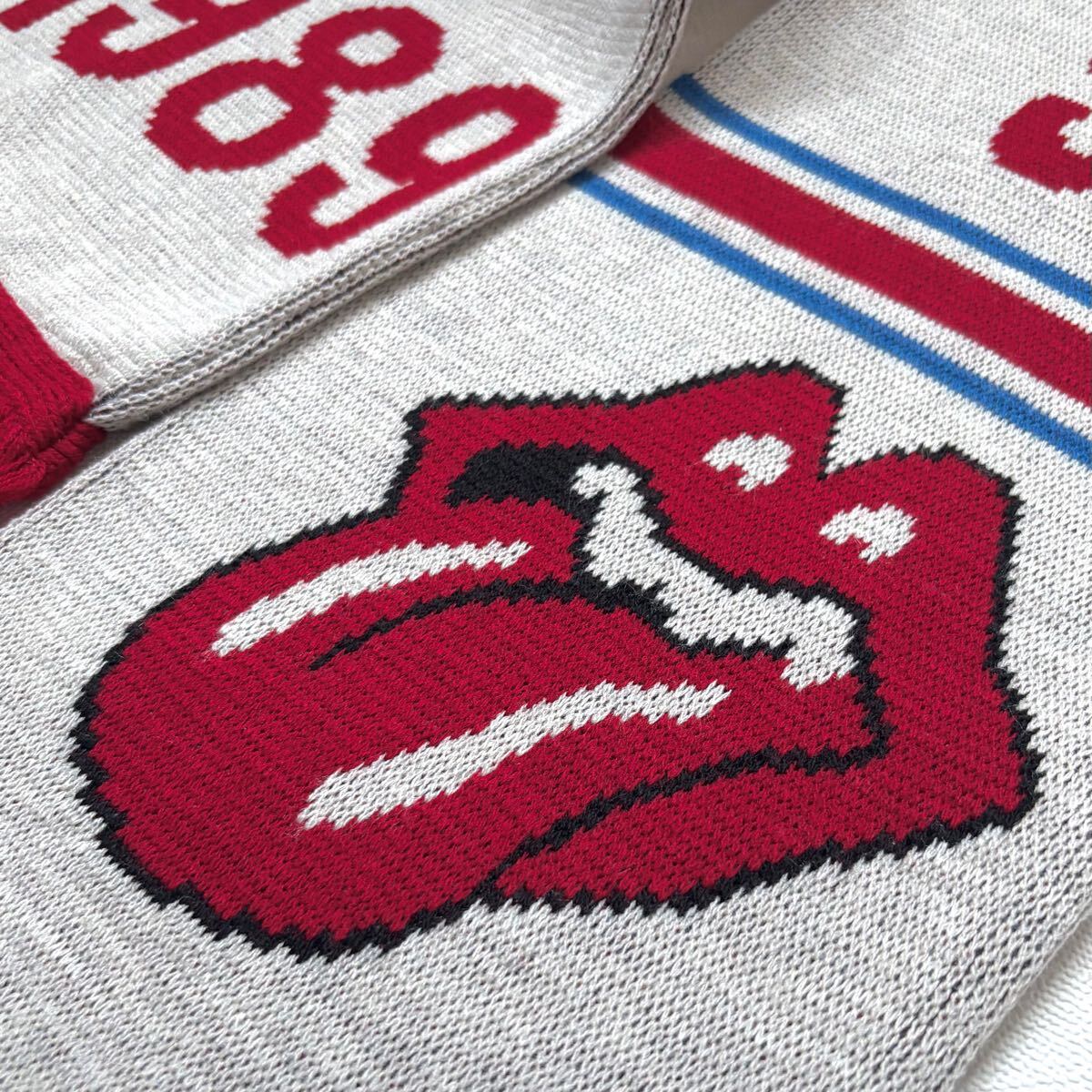 世界中のファンから愛されているTHE ROLLING STONES / ローリングストーンズのシンボルマーク、「リップ&タン」を大胆にあしらったマフラー。