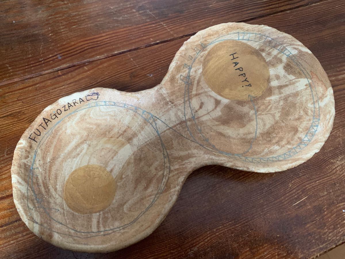 【めいポタ 鈴木 明美】ふたご皿『HAPPY!』