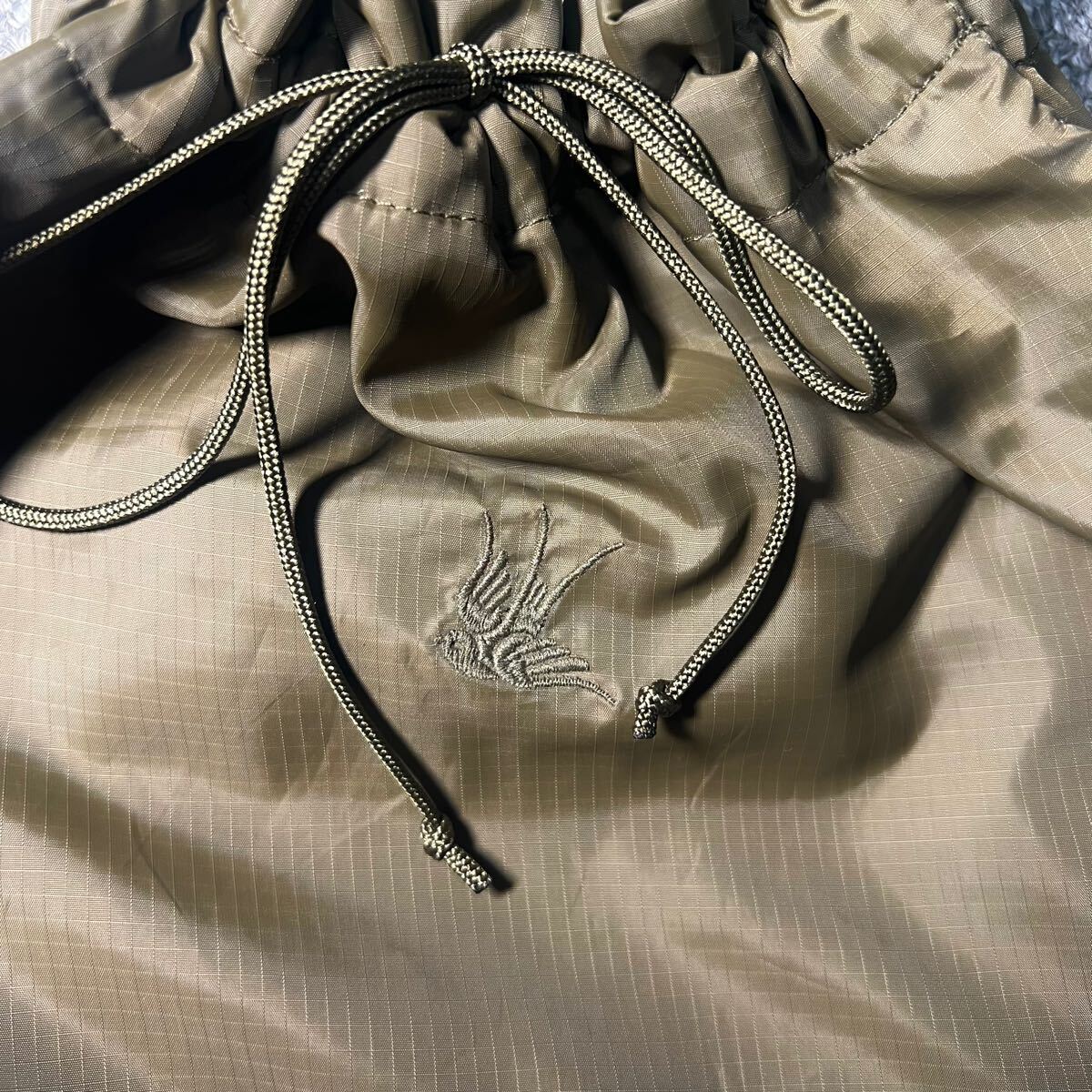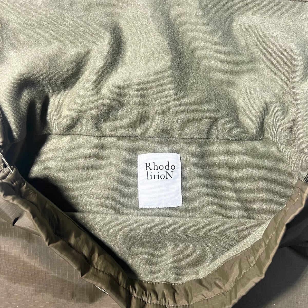 軽量でしなやかさがあり、高密度で防風性にも優れています。オリーブカラーは光沢のあるソリッドカラー。