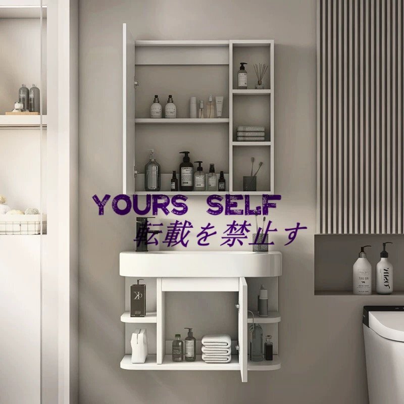 上下のダブルキャビネットは2重収納。 上部ミラーキャビネットには、毎日の化粧品、スキンケア製品、マスク、カミソリなどを収納できます。 下部のメインキャビネットには、洗濯洗剤、ヘアドライヤー、その他のアイテムを収納できます。 サイドキャビネットには用紙を収納できます。