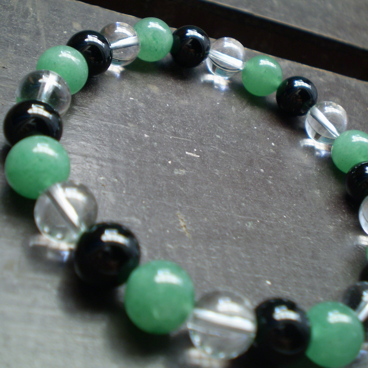 アベンチュリンxオニキスx水晶ブレスレット 天然石 パワーストーン