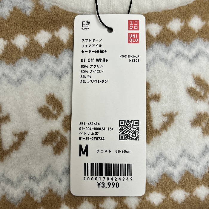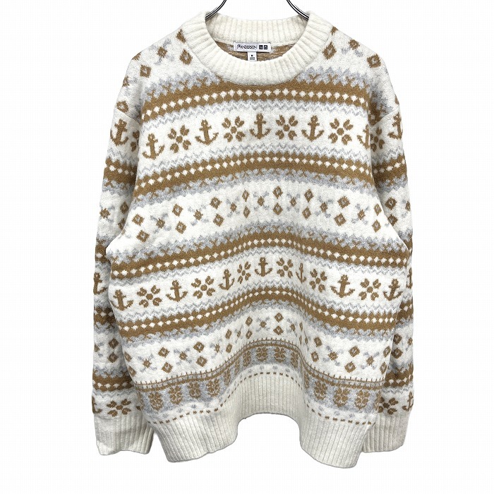 | 商品タイトル | 【新品】UNIQLO|JW ANDERSON スフレヤーン フェアアイル セーター ニット 長袖 アクリルなど M オフホワイト 白×茶×グレー レディース |