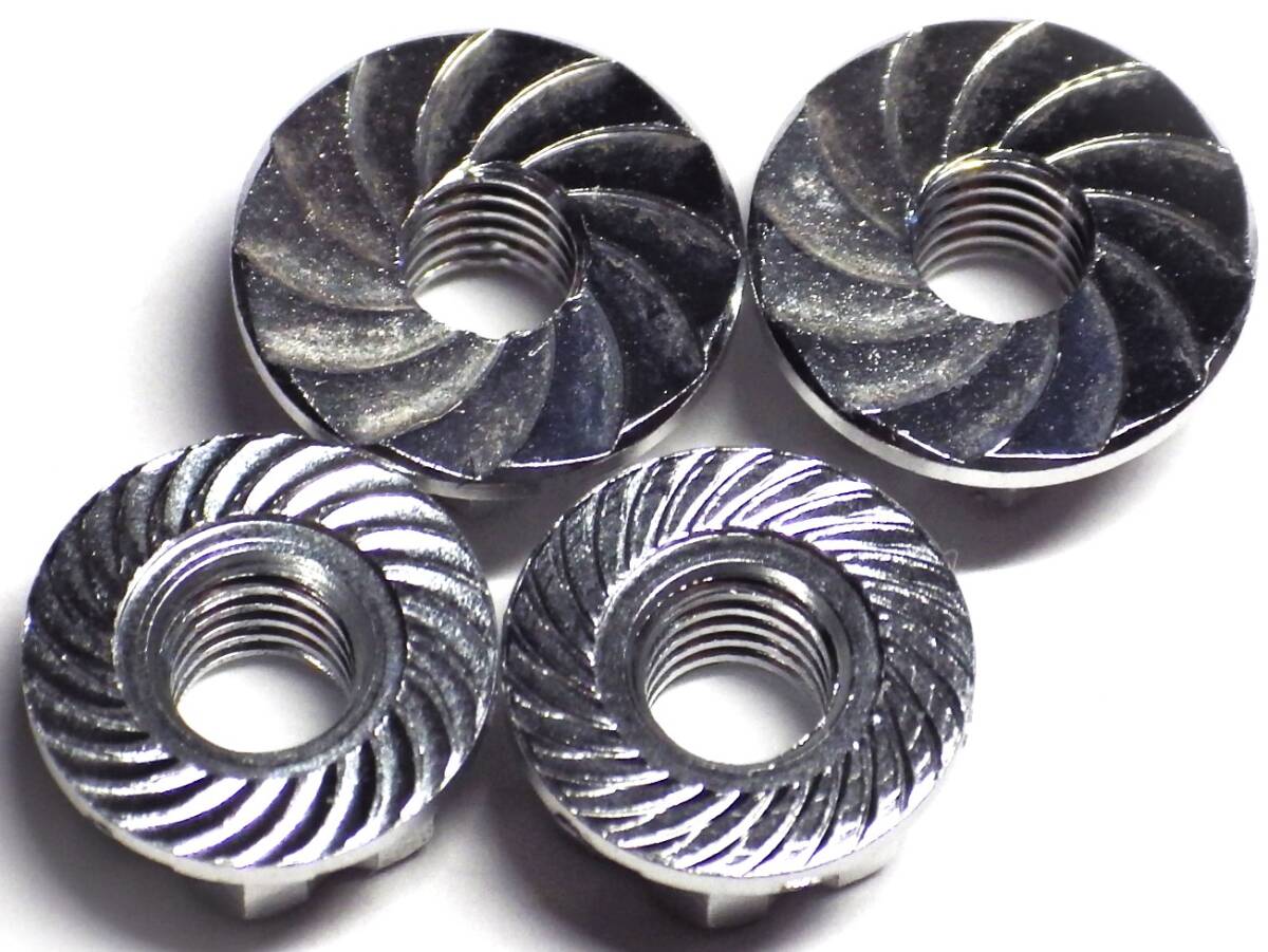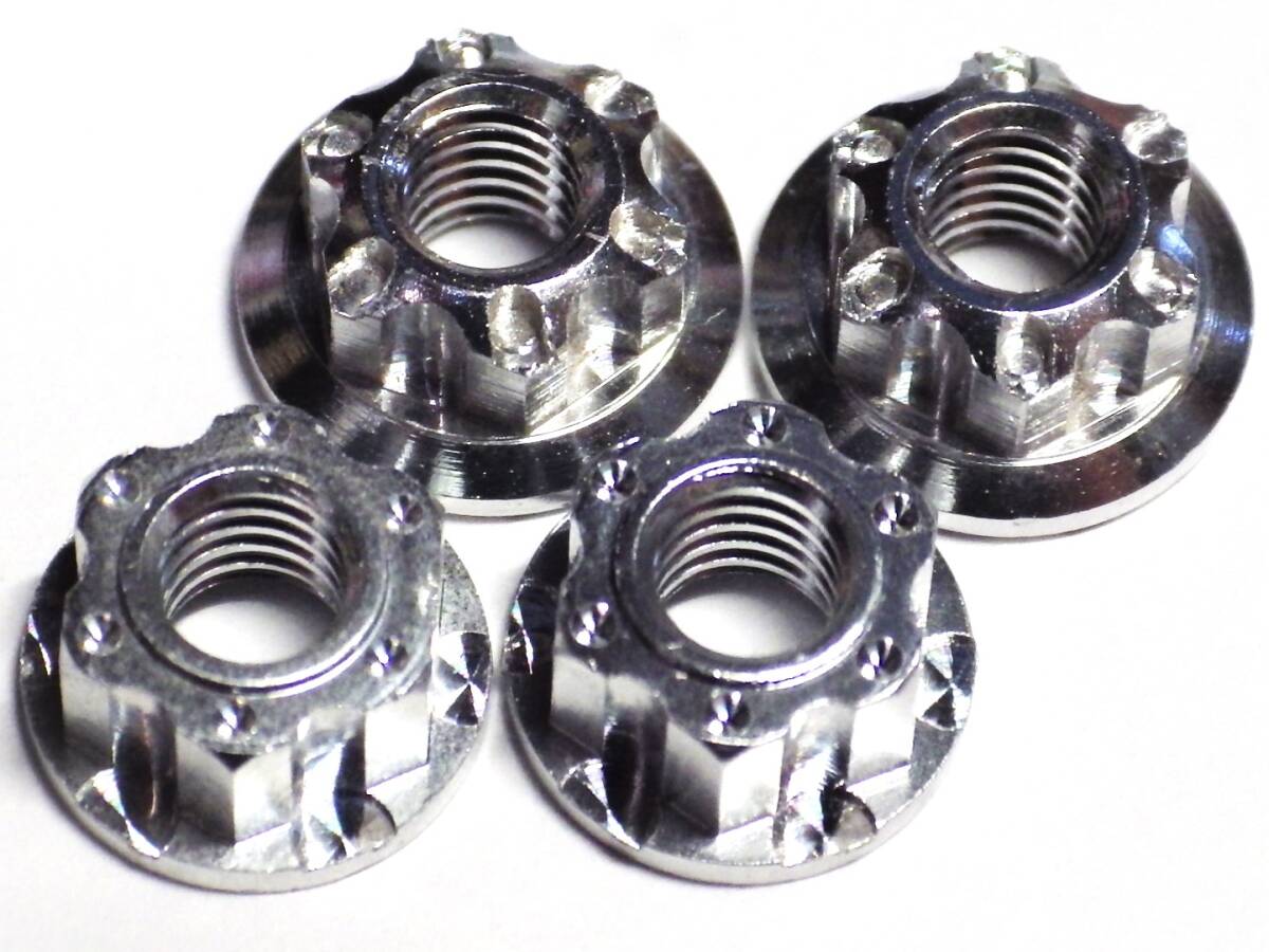4mm アルミ製セレート付フランジ ホイールナット 白銀 F用小×2個+FR用大×2個=合計4個set