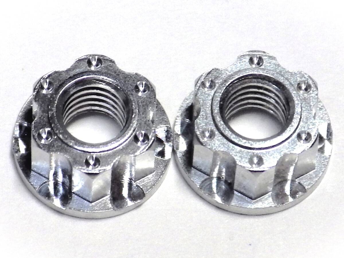ラスト1点 4mm アルミ製セレート付フランジ ホイールナット silver F用小/FR用大 彫刻加工 各2個set(検 RWD ドリフト SDYD2GRK レーヴディ