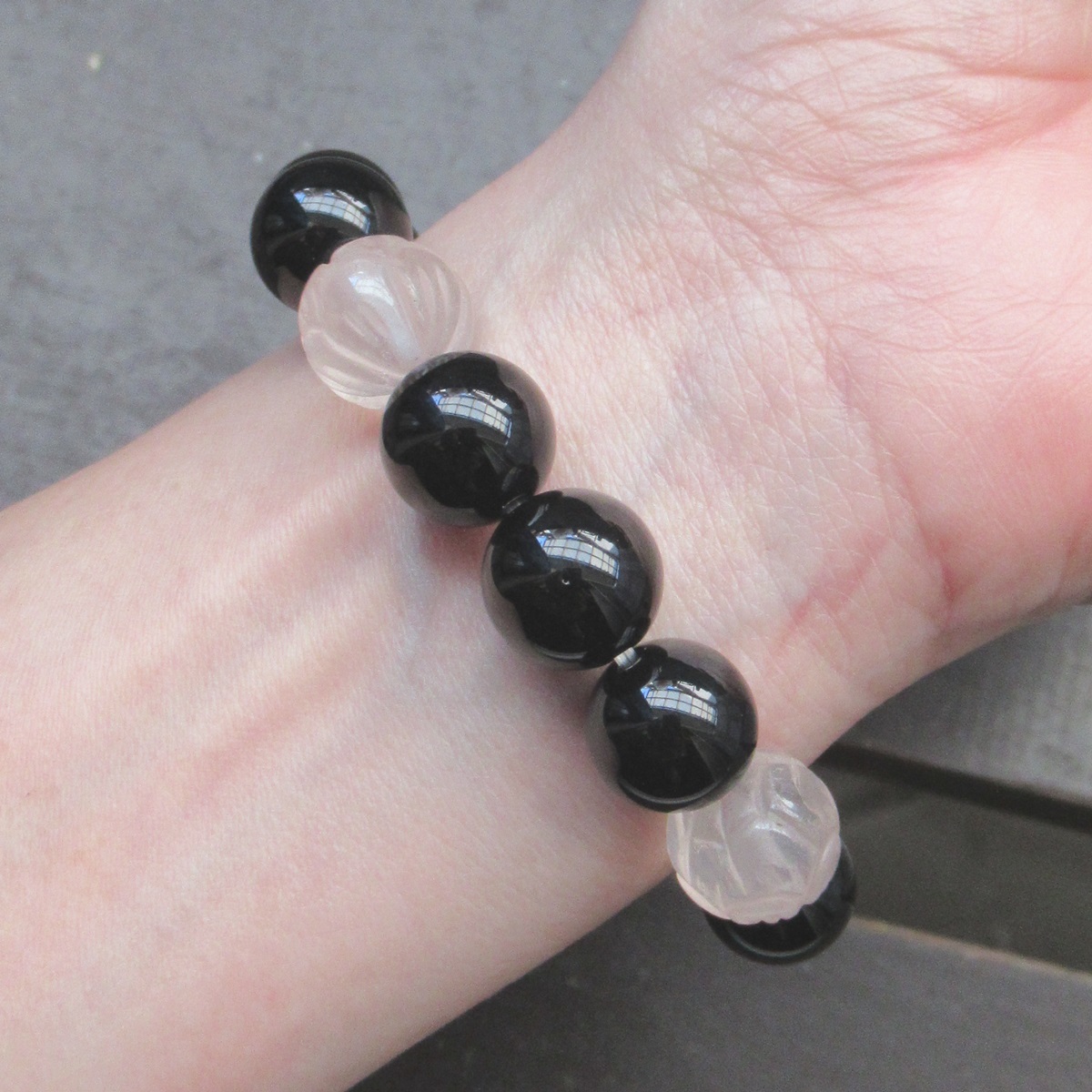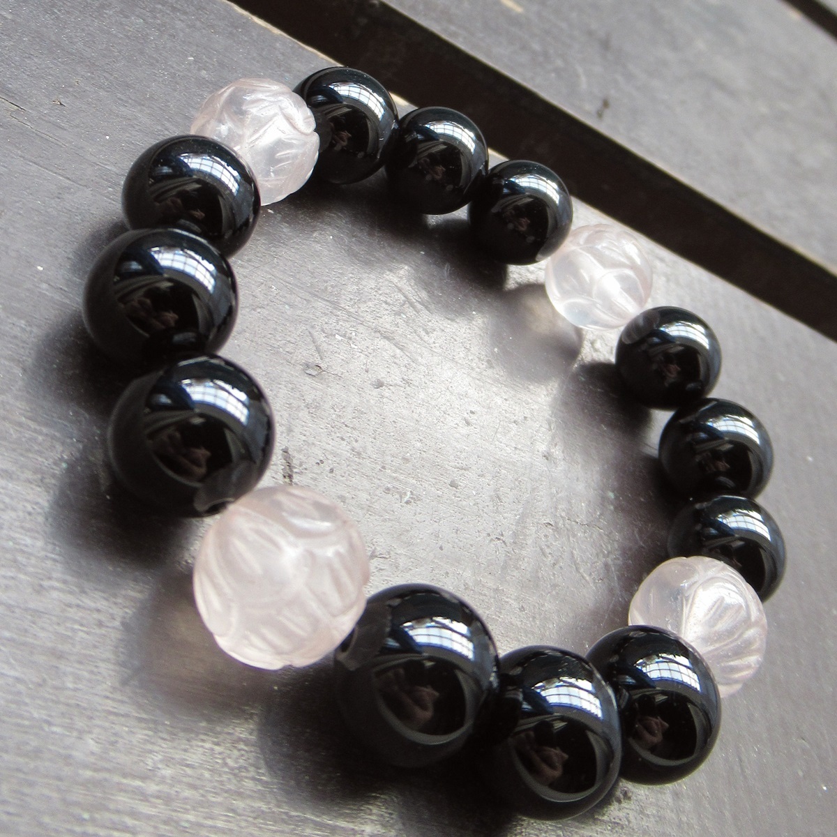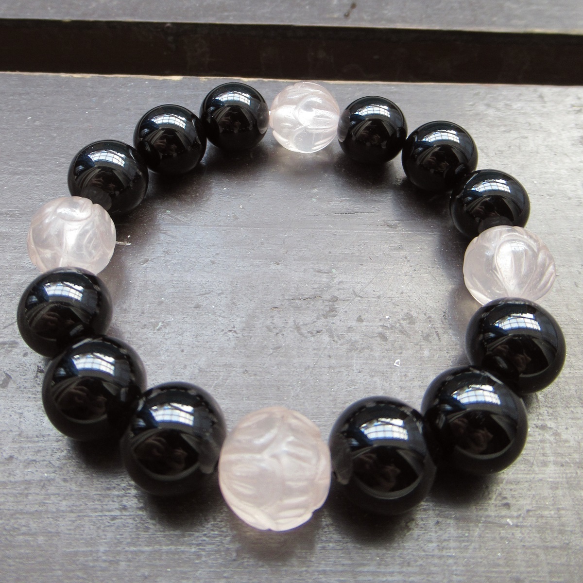 *蓮*ローズクォーツxオニキスブレスレット 天然石 パワーストーン
