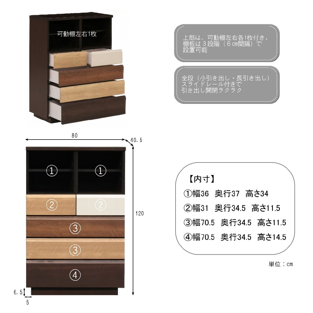 幅80cmチェスト 高さ120cm スライドレール付き 箱組 多用途デザイン色々 マルチカラー グラデーションカラー