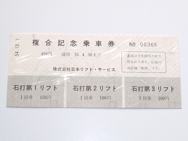※ 記念切符★石打丸山スキー場開設30周年 石打第一リフト開業25周年 複合記念乗車券★日本リフト・サービス★昭和54年12月1日★1枚 ※