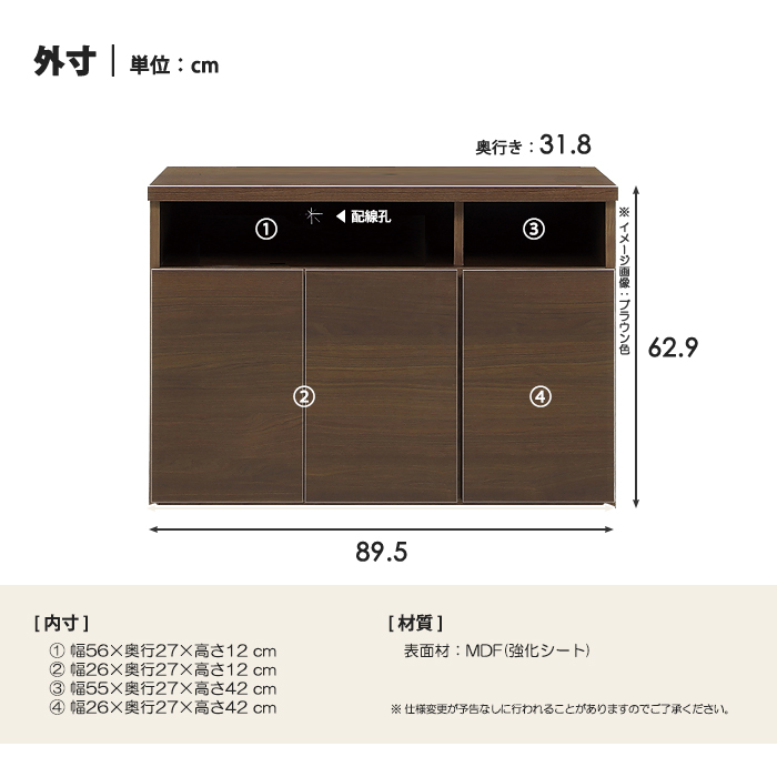 商品サイズ本体:幅89.5×奥行31.8×高さ62.9 cm