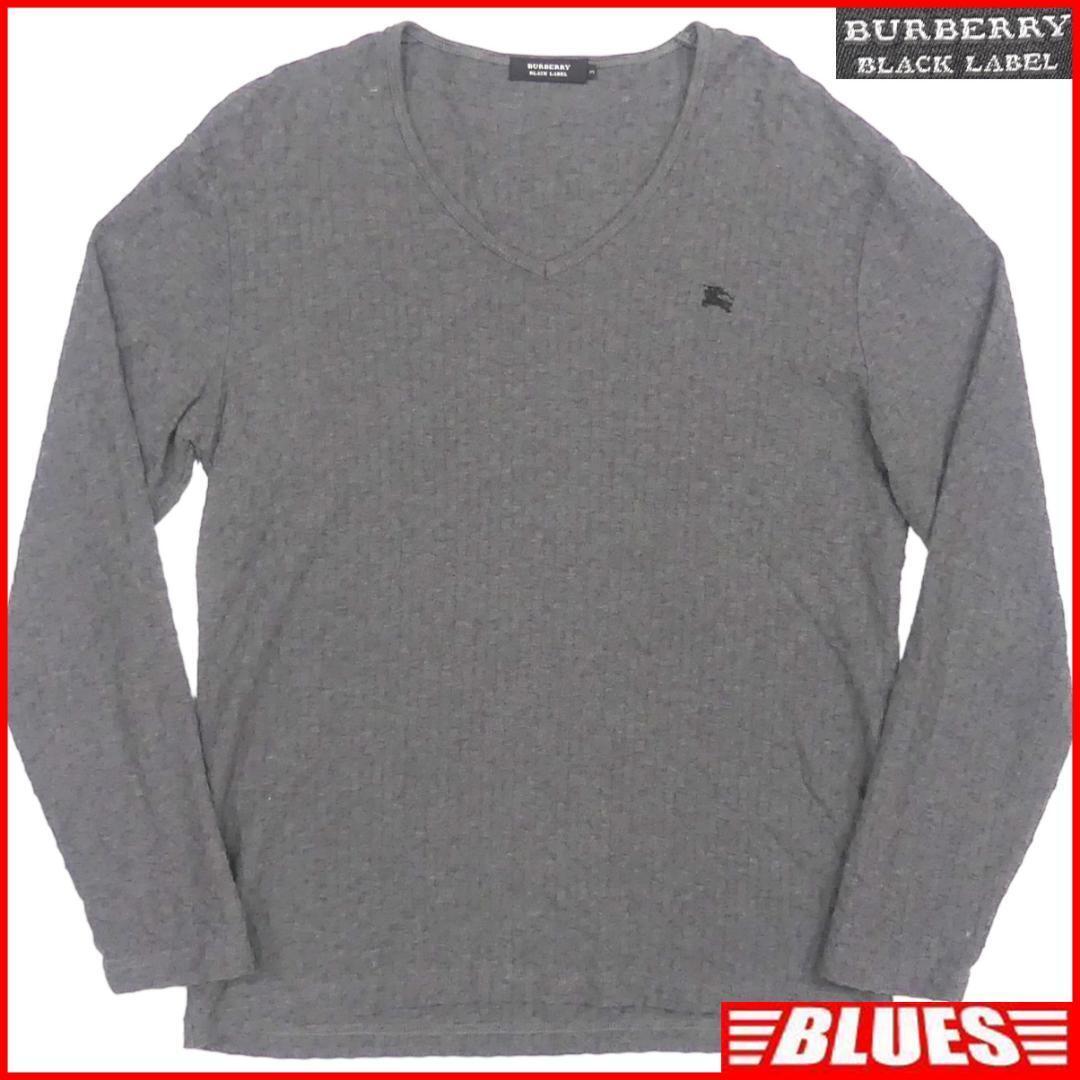 即決★BURBERRY BLACK LABEL★メンズL 廃版 Tシャツ バーバリーブラックレーベル 3 グレー 三陽商会 カットソー 長袖 刺繍