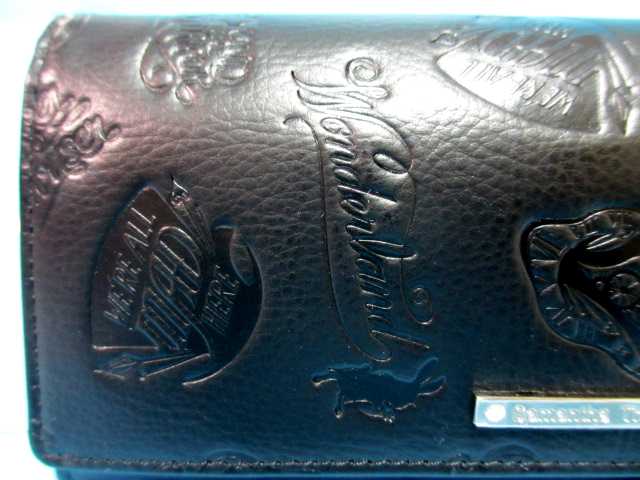 アリス・イン・ワンダーランドのロゴやモチーフがデザインされた本牛革長財布。