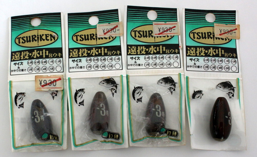 1180/未使用品・長期店頭販売品/TSURIKEN 釣研 遠投水中ウキ -3号 4個セット