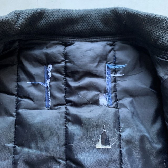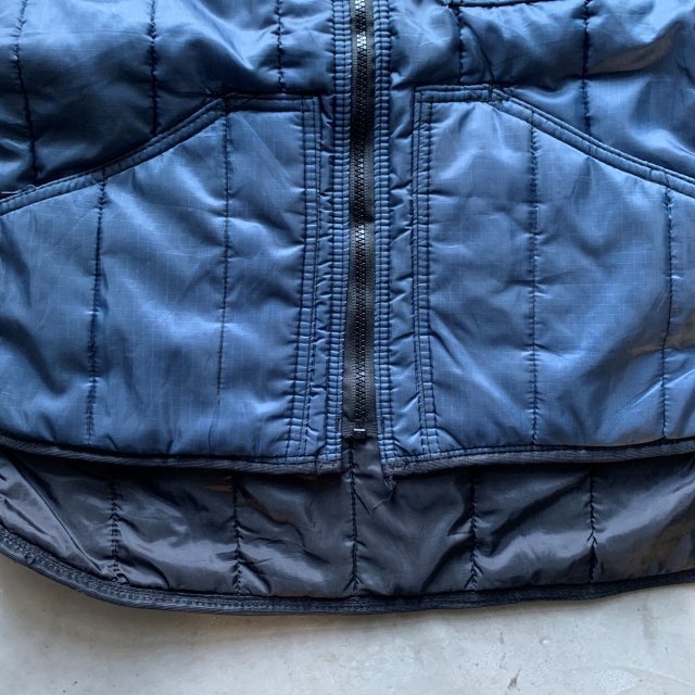 ★商品状態★ ・着用感があり、下腹部にステッチ抜け、内装に破れダメージなどが見られます。 ・古着慣れされている方でしたら問題なく着用していただける程度かと思います。 ★素材★ おそらくナイロン 中綿入り ★配色★ ネイビー ★サイズ表記★ M/L相当 ・実寸を参考にして下さい。 ★実寸サイズ★ 肩幅 46㎝ 身幅 55㎝(脇下~脇下) 着丈前62㎝(襟下~裾) 着丈後71㎝ ・平置きにての採寸となります。 ・若干の誤差はご了承ください。 |