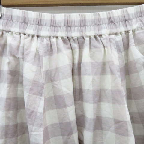 レイビームス Ray Beams フレアスカート ギャザースカート ロング丈 ギンガムチェック柄 麻 リネン 1 ライトパープル /YK17 レディース