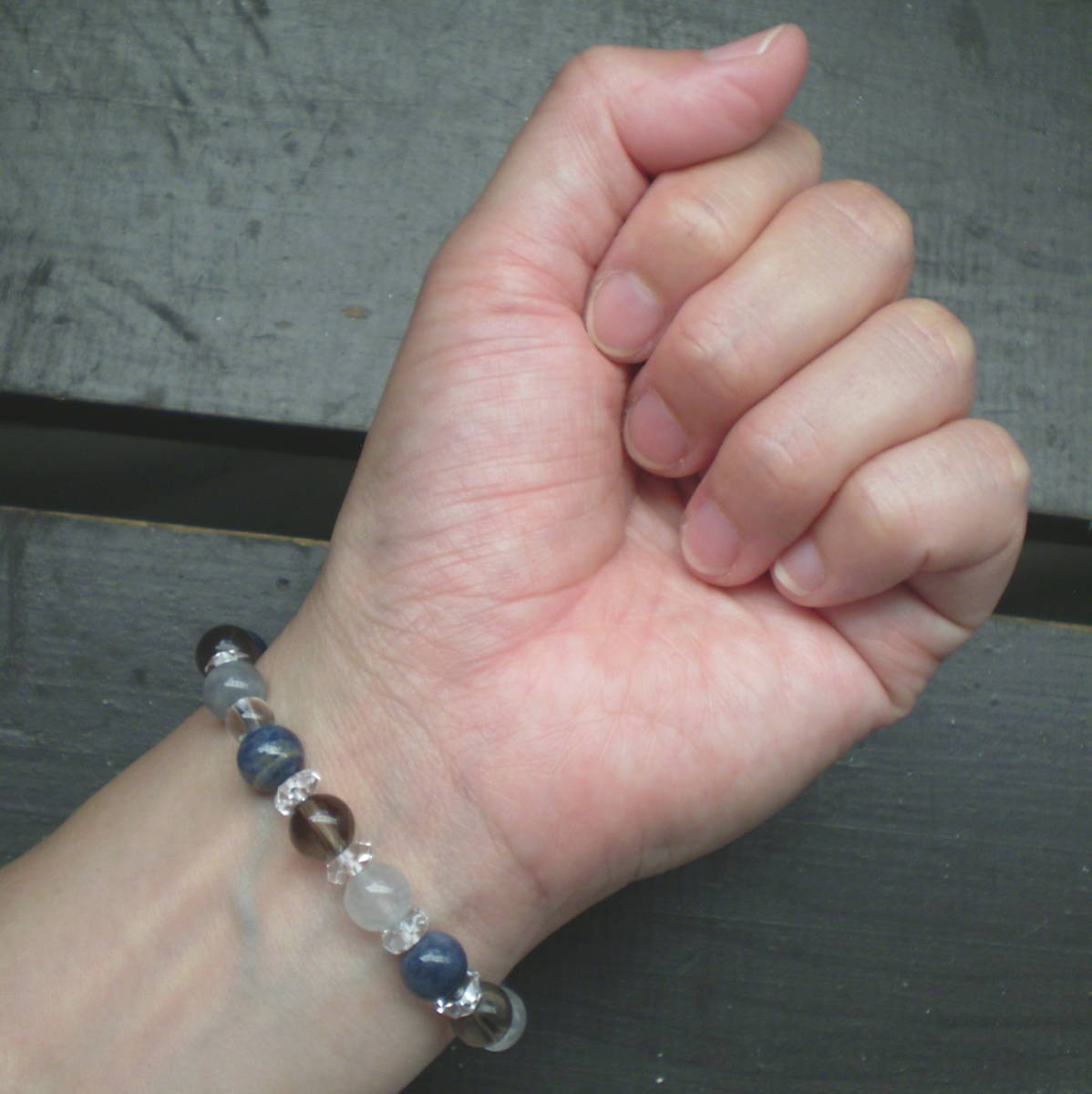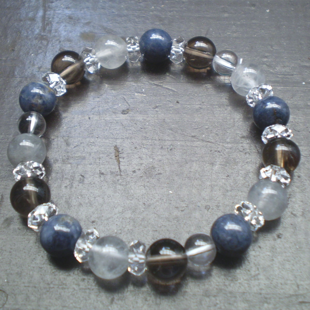 サファイアxクラウディークォーツxスモーキークォーツブレスレット 天然石 パワーストーン