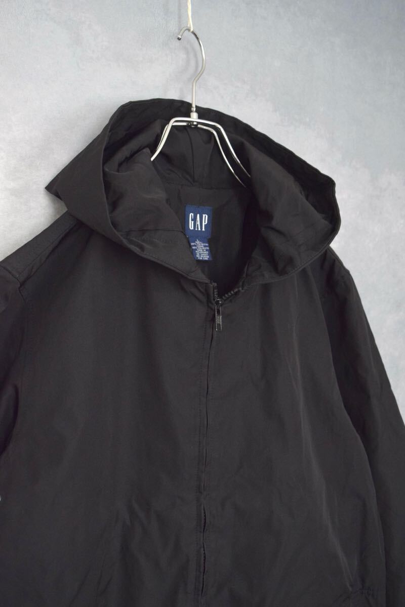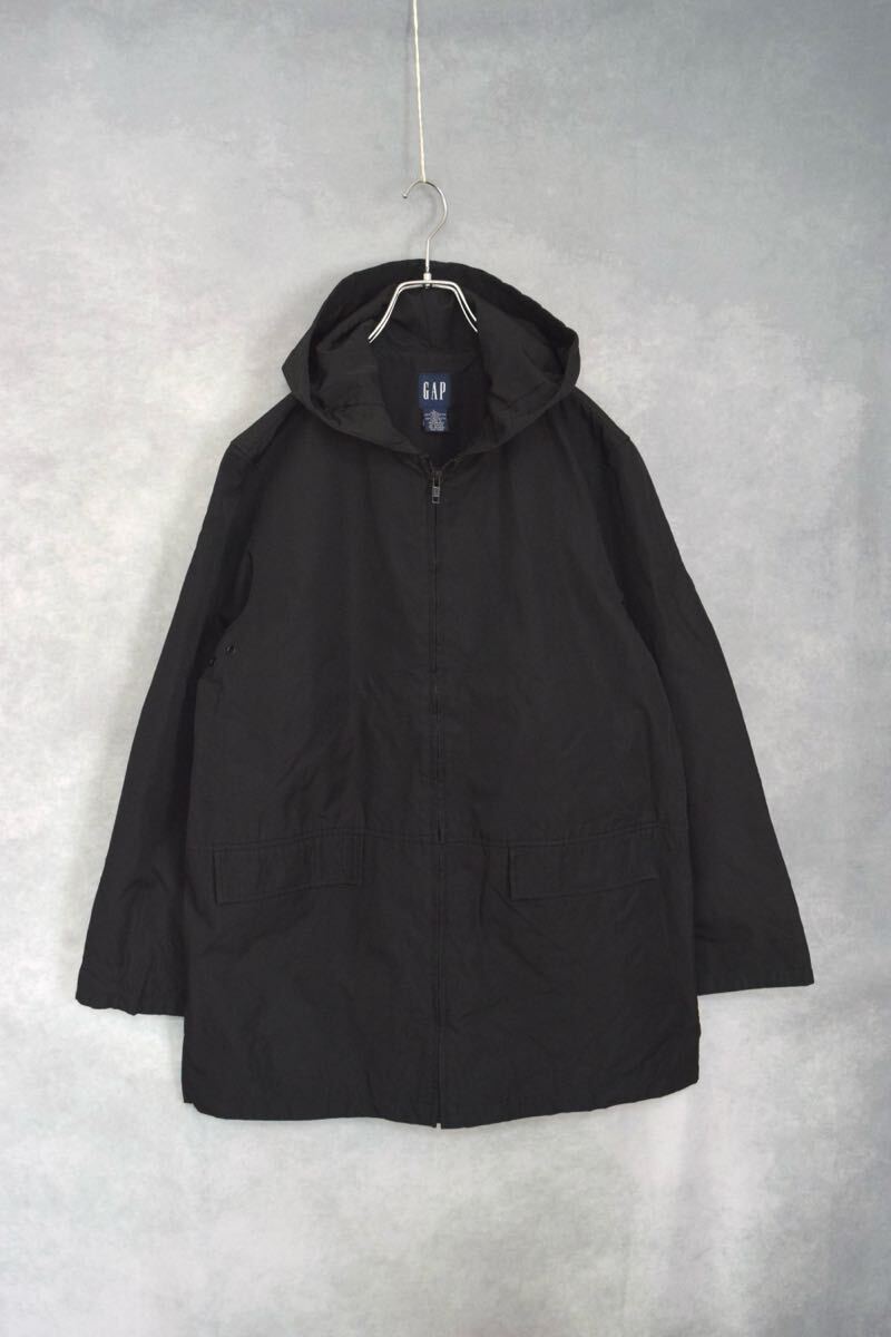 【 オールドギャップ 】old gap ブラック コーティングポリエステル フーデッド ハーフ ジャケット / size L / 00s Y2K ナイロン