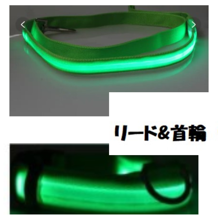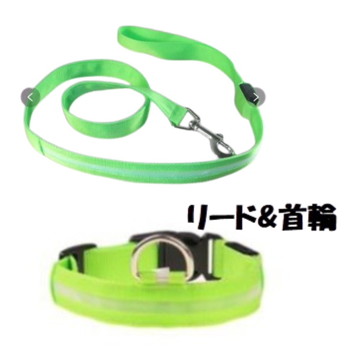 新品●送料無料●光る リード&首輪 サイズM グリーン 2点セット 夜道も安心
