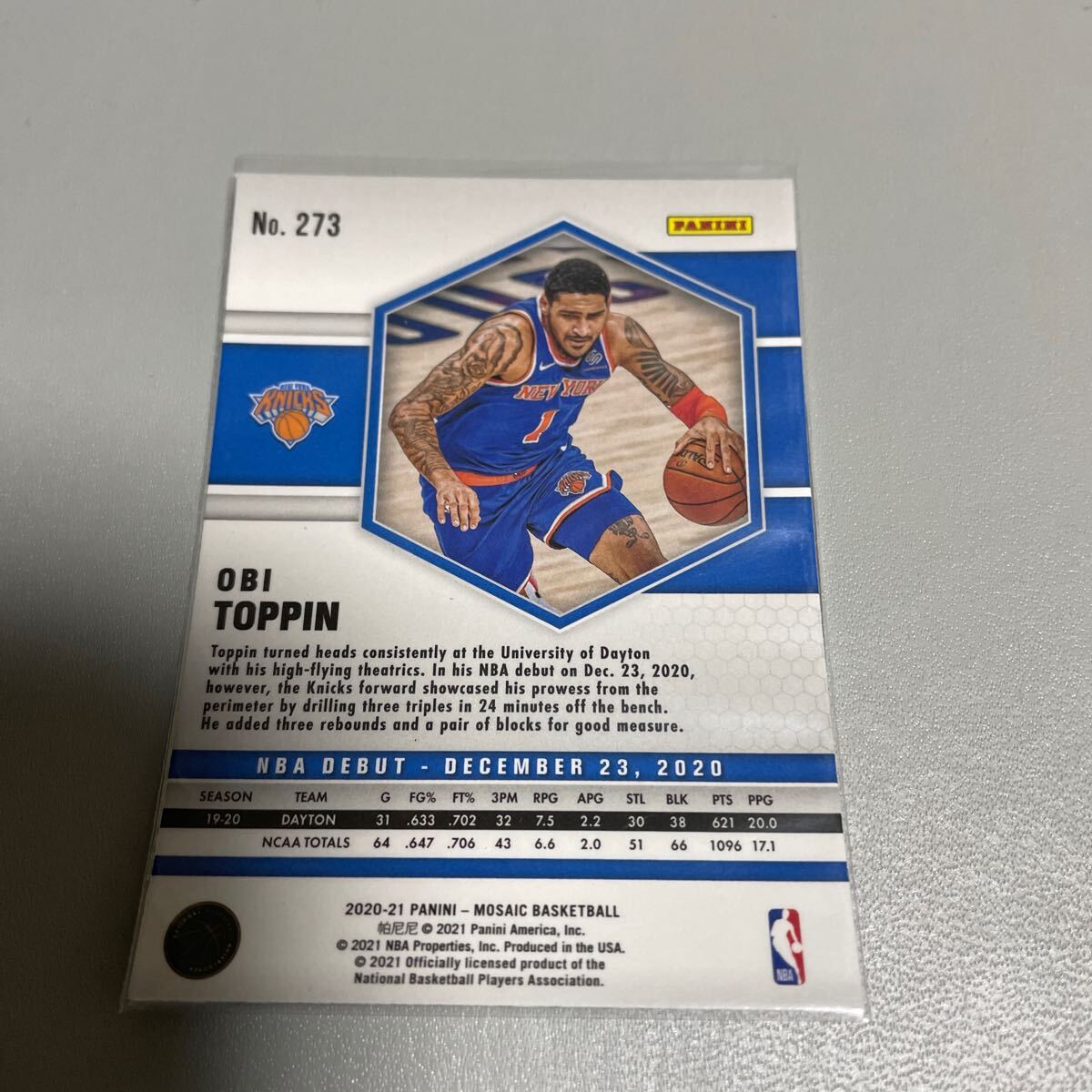 2020-21 PANINI MOSAIC BASKETBALL #273 OBI TOPPIN RC