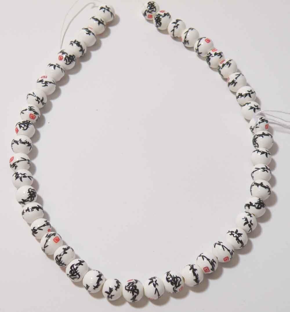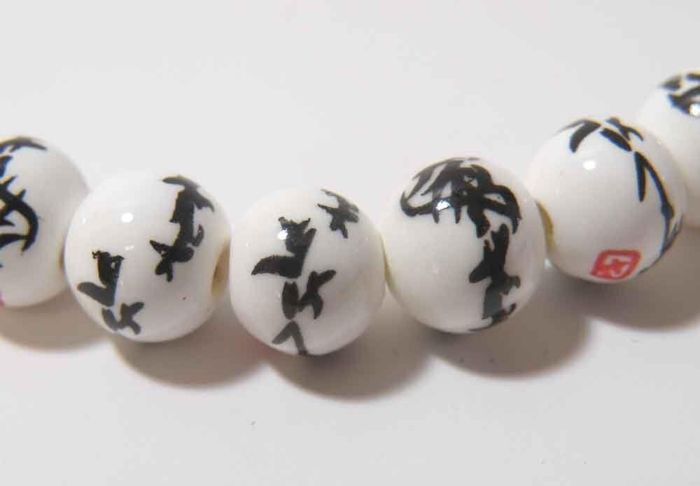 陶器製 転写ビーズ 直径約10mm 1連(約38個)黒竹41-10d