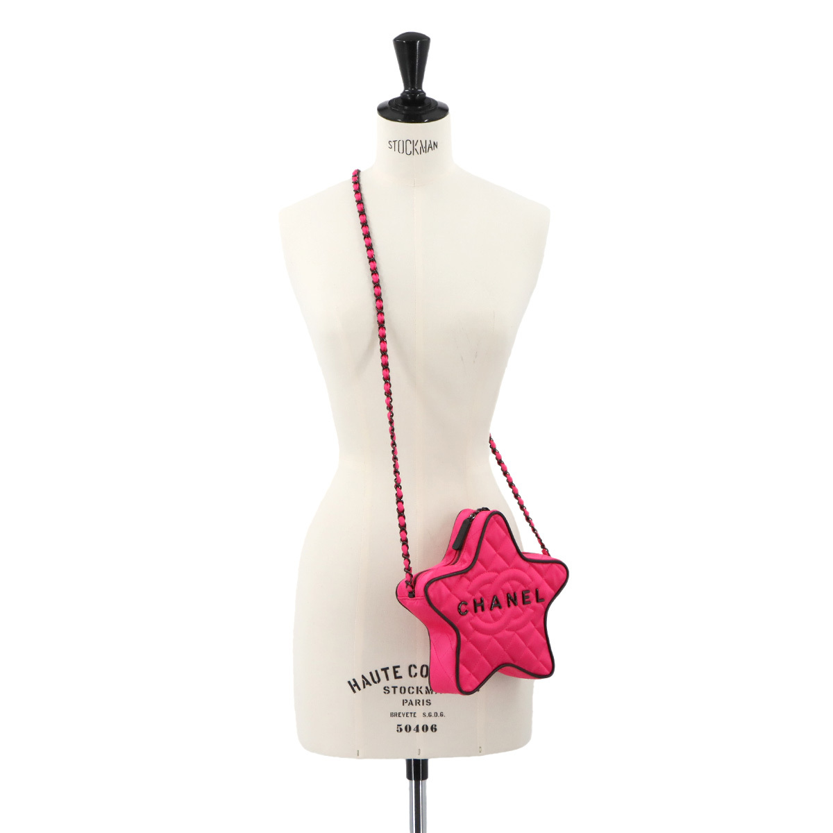 | 商品概要 | シャネルから、2023‐2024年クルーズコレクションよりポップな星形のチェーンショルダーバッグです♪サテン素材に斜めの格子状のステッチを施し、鮮やかなピンクにブラックのアクセントを添えたお洒落なデザイン。遊び心ある大人のお洒落を格上げするお品です。 |