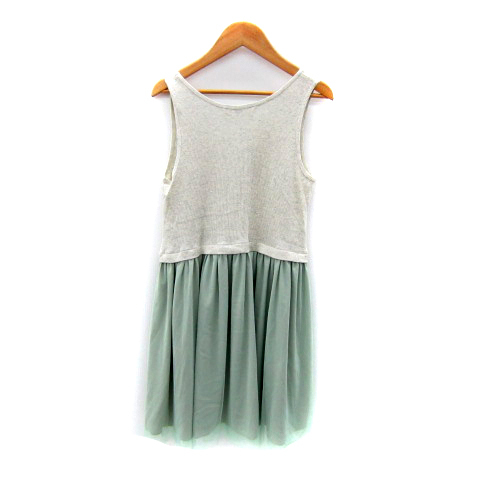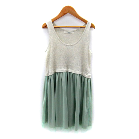 アナザーエディション アローズ ワンピース ひざ丈 ノースリーブ Uネック 切替 チュール ライトグレー ミントグリーン レディース