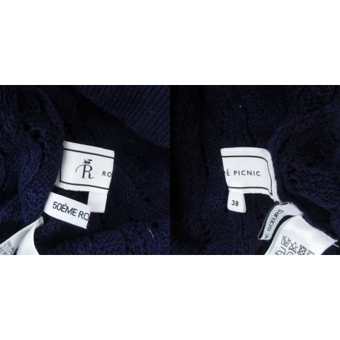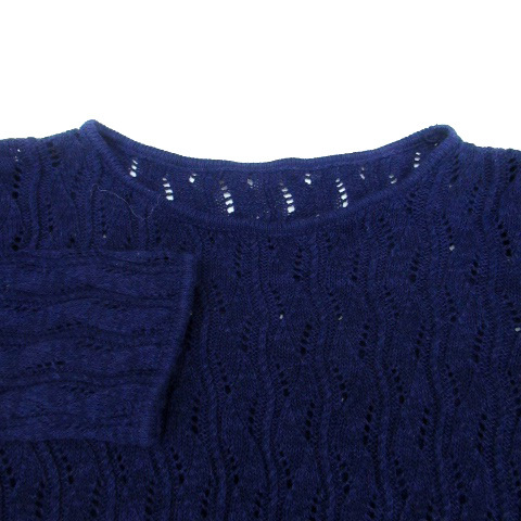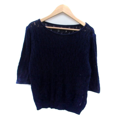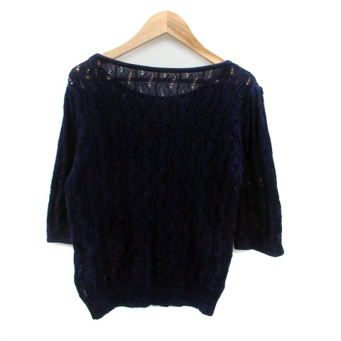 ロペピクニック ROPE Picnic ニット カットソー ラウンドネック 五分袖 麻 リネン混 38 M 紺 ネイビー /HO36 レディース