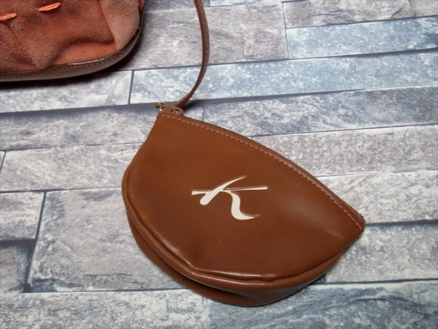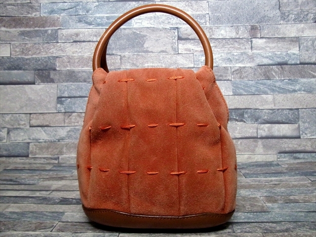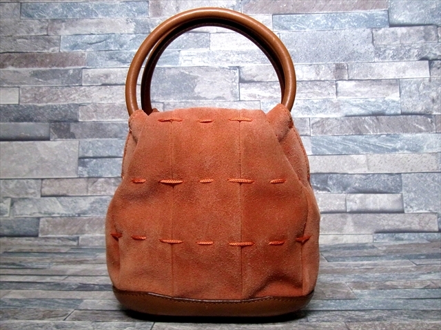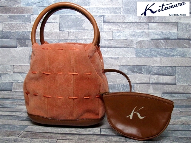 KITAMURA キタムラ スエード レザー ハンドバッグ ポーチ 茶 ブラウン 橙 オレンジ 横浜元町 | ||