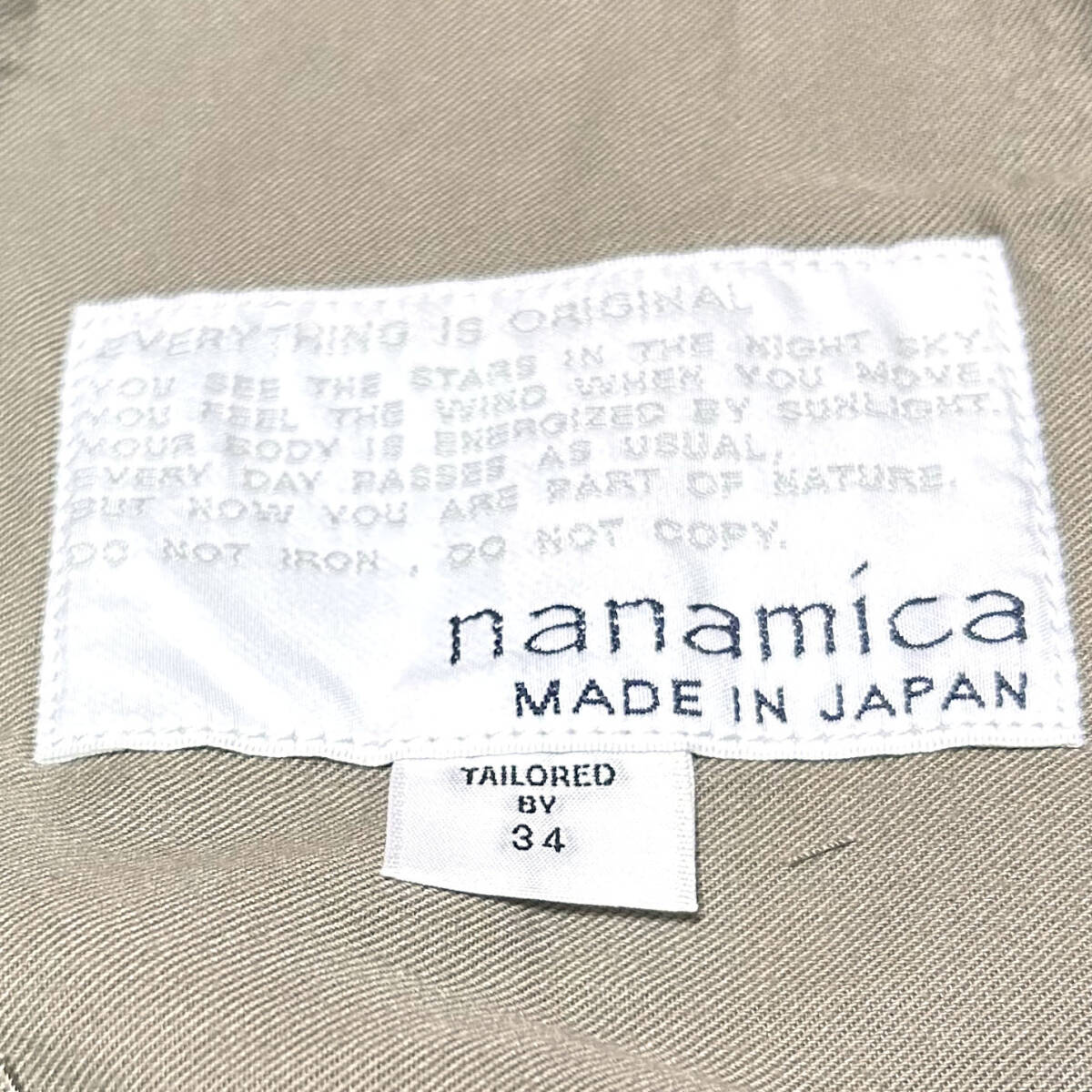 商品説明 | ブランド NANAMIKA(ナナミカ) 品名 Straight Chino Pants ストレートチノパンツ 品番 SUCS400U カラー グリーン サイズ 34(XLサイズ位の大きさ) 股上26㎝ 股下78㎝ ワタリ34㎝ 裾幅21㎝ (平置実寸で測定 多少の誤差はご容赦下さい) 素材 本体:コットン65% ポリエステル35% 原産国 日本 定価 26,400円 ナナミカの日本製のストレートカットのチノパンツです。 リサイクルポリエステルの外側をオーガニックコットンで覆った二層構造のカバーリングコアヤーンを使用し、クラシックなチノ素材を製作。 コットンの肌触りに、軽量且つ耐久性があり乾きやすいという機能性をプラスしたnanamicaオリジナルのハイブリッド素材。 ・デザインベースは50年代のUSアーミー/チノトラウザーズ。 ・フロントファスナー開き。 ・後ポケットは隠しドットボタン仕様。 ・股下には脚の可動域を広げるマチ付き。 |