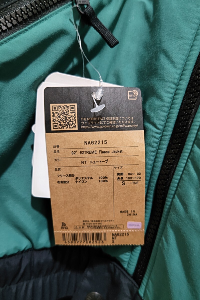 92 EXTREME FLEECE FZ JACKET エクストリーム フリース