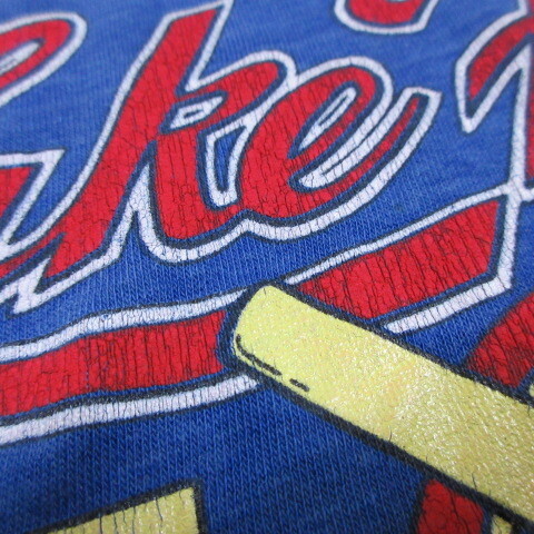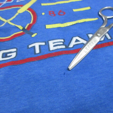 ★Size SM (表記 M)肩幅 40cm, 身幅 43cm , 着丈 65cm,袖丈 18cm ★アメリカ古着 1986 Tシャツナイスなユーズド感です★Condition 10/6お腹に4個、背中に1個穴があります多少の汚れ重ね着用にいかがでしょうか!★Material 50%cotton POLY★Color 青★Made in USAご覧いただきありがとうございます。広島の古着屋ジョージアです。ヤフオクさんや、ヤフーショッピングさんで、30年前の在庫の オールドTシャツを、 どんどん出品中です。どうぞご覧ください。クリックポストでの同梱は出来ませんが、レターパックプラス、ヤマト便での同梱が出来ます