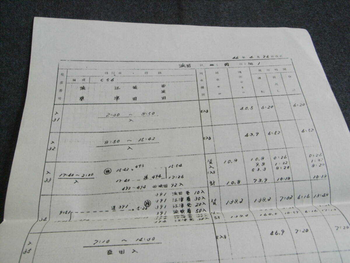 機関車行路表 編成C56 浜田区 丙組 NO.1 昭和46年4月26日改正 三江線 山陰本線 国鉄 日本国有鉄道 蒸気機関車 運用表