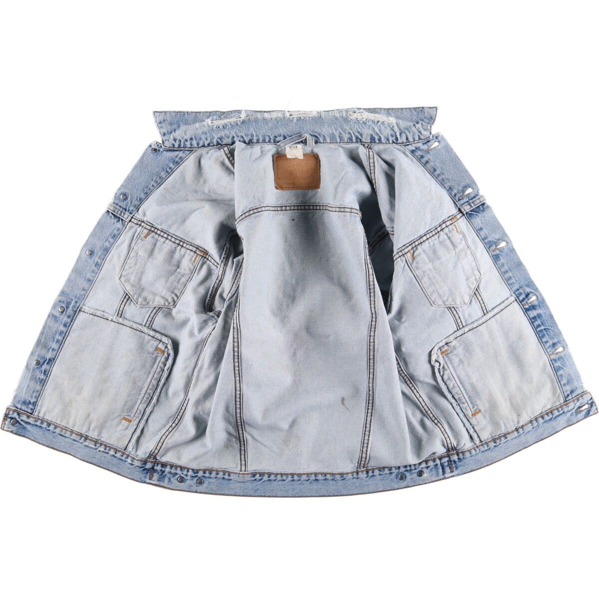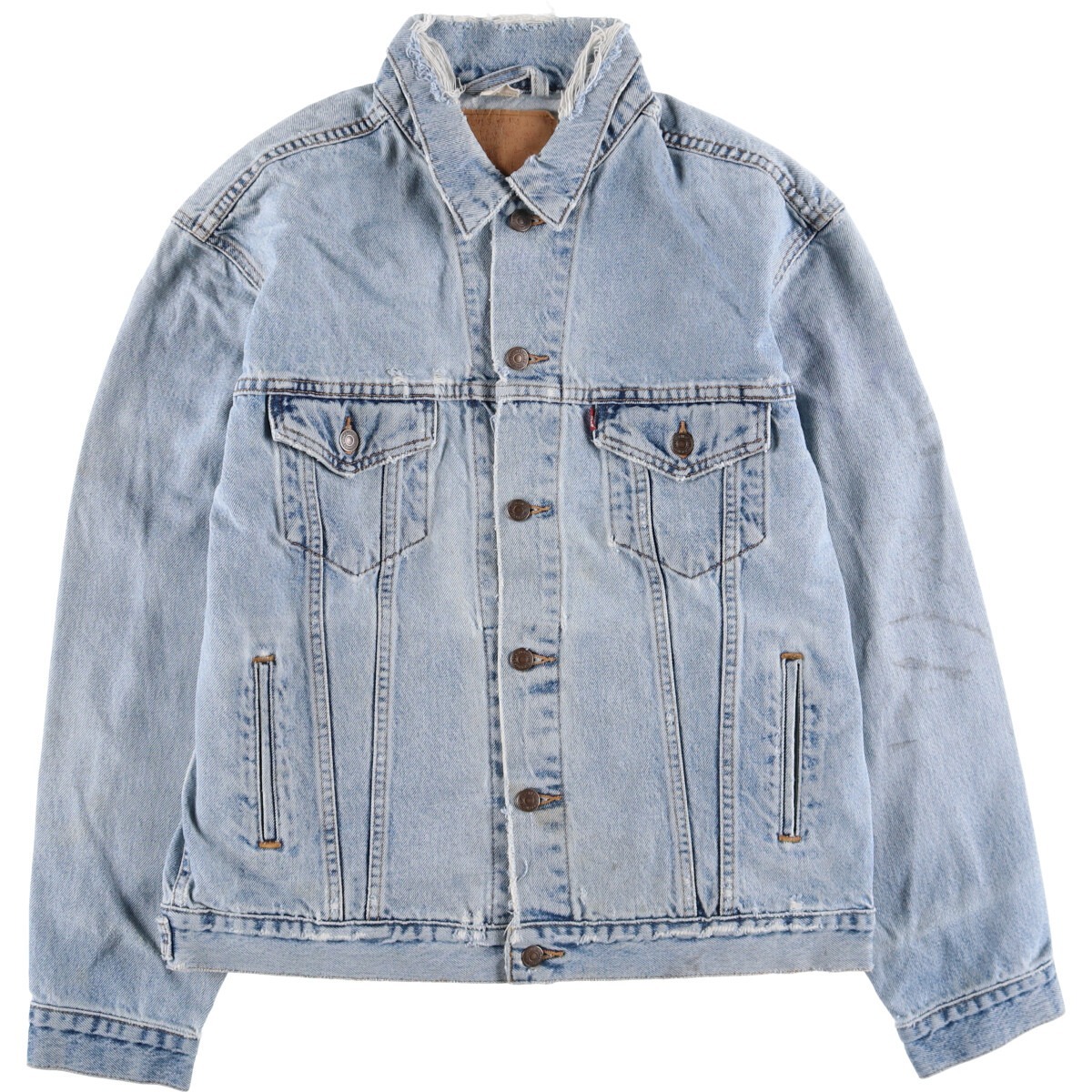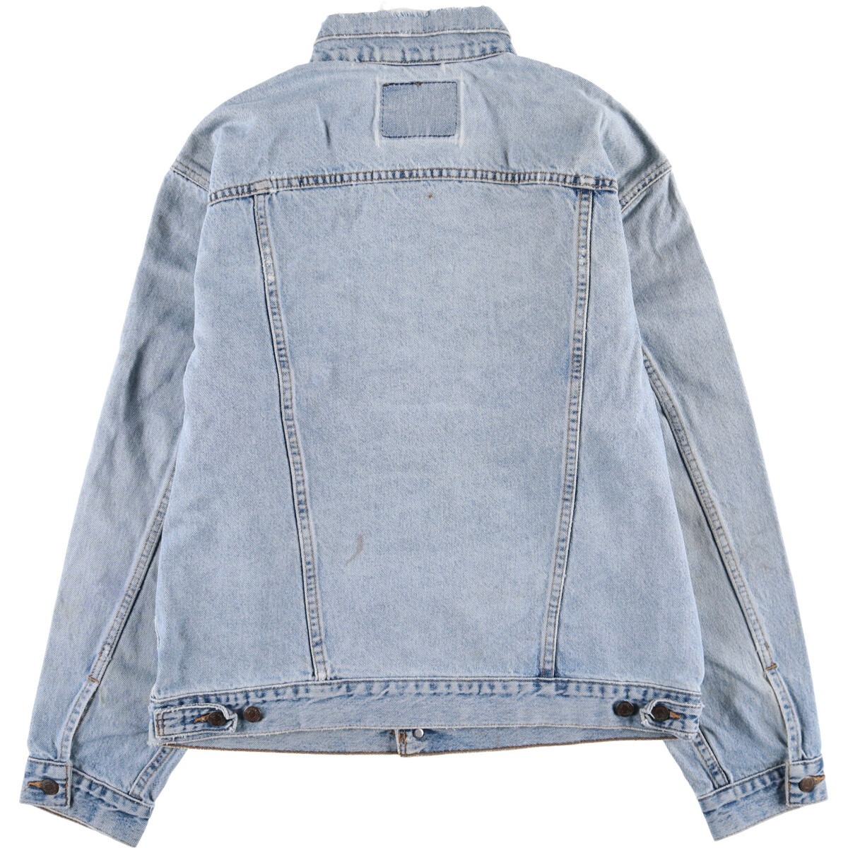 | 表記サイズ: LARGE 着丈: 65cm 身幅: 59cm 肩幅: 53cm 袖丈: 62.5cm ![]() | ![]() ランク:C USEDデニムですので使用感、擦れ、色落ちなどございますが、まだまだご愛用していただけます。 古着という事をご理解の上ご注文よろしくお願いします。 【状態追記】 ●襟ぐり・胸部・裾に破れ ●全体的に色褪せ・擦れ・薄汚れ ●前、腹部・両袖に汚れ ●後、首元・背中・裾・両袖先に擦れ ●後、ヨーク下・両袖・背中に汚れ ●内側、全体的に汚れ ●内側、下腹部・裾周りに擦れ |