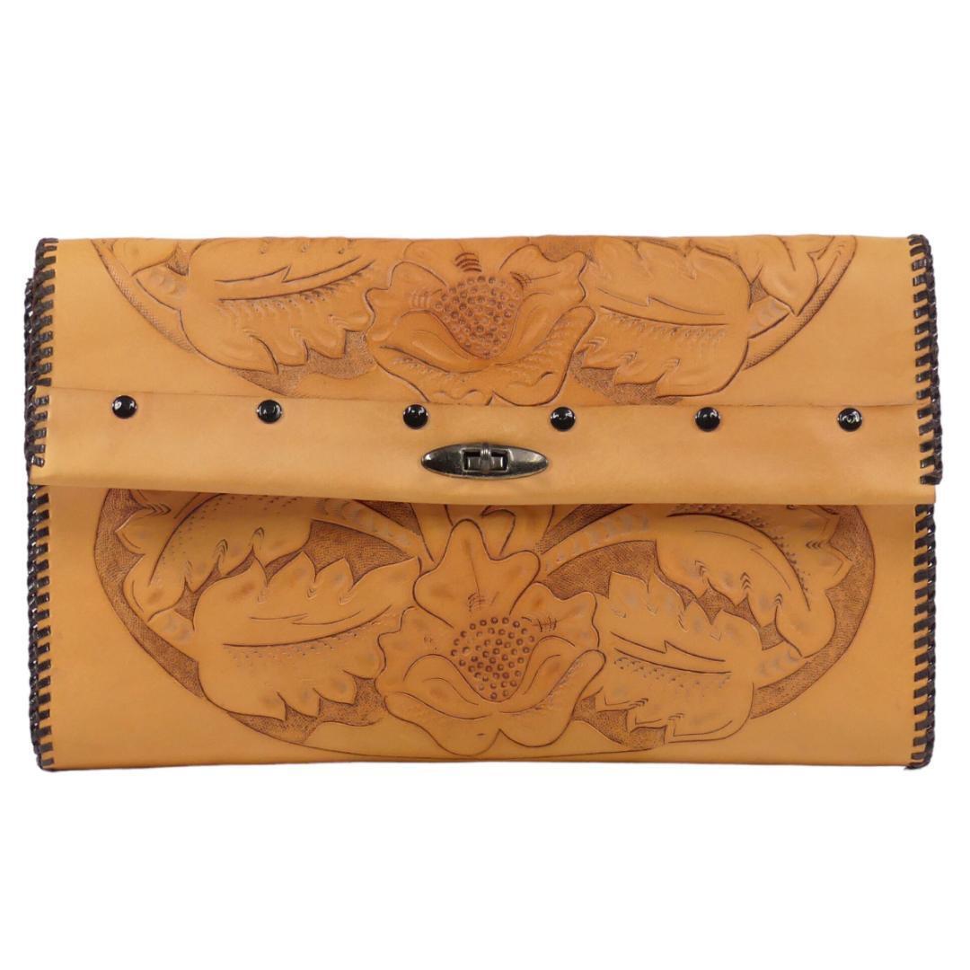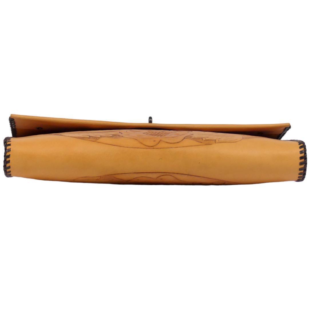 即決★N.B.★オールレザークラッチバッグ カービングバッグ 茶 キャメル ターンロック 本革 手提げバッグ 本皮 旅行 カバン
