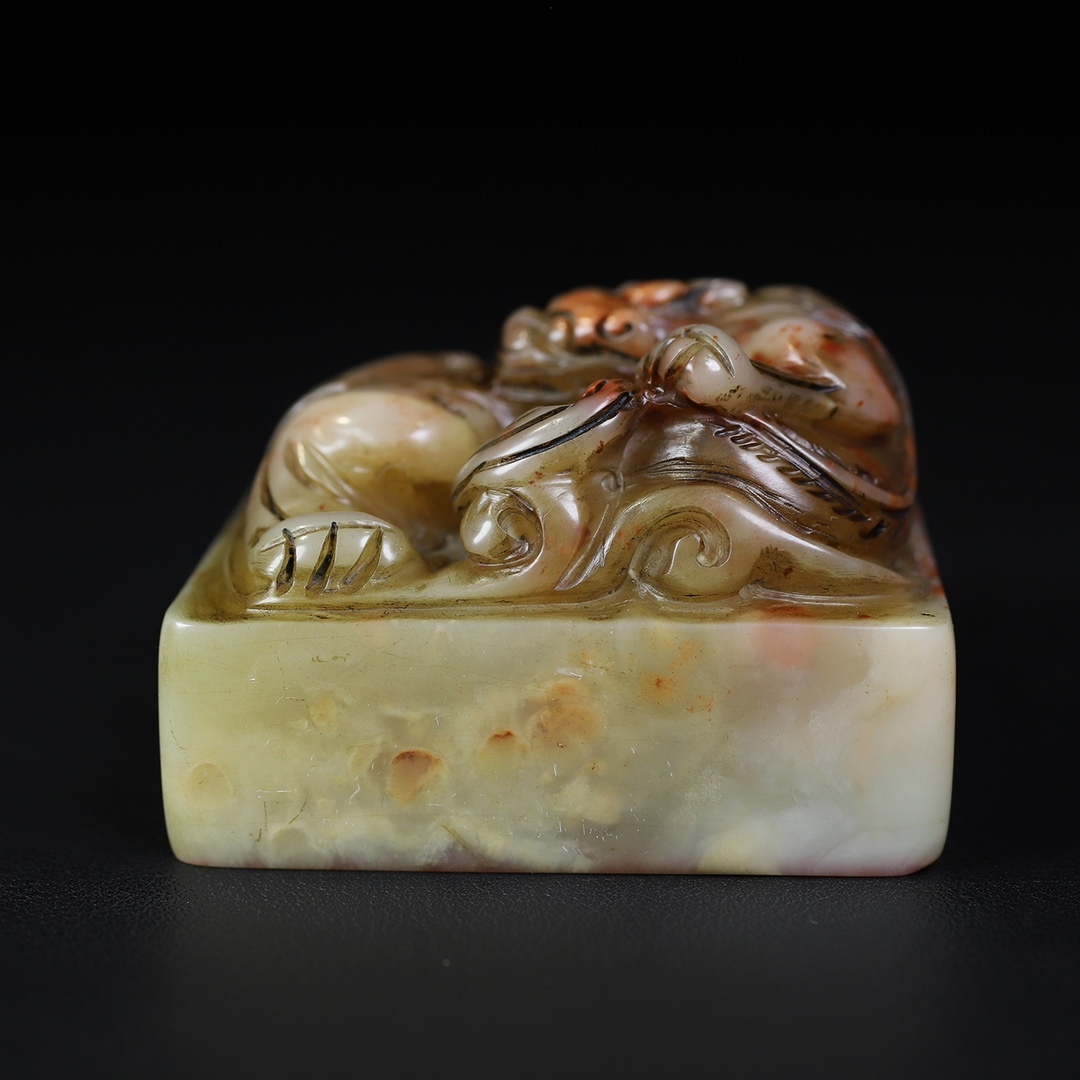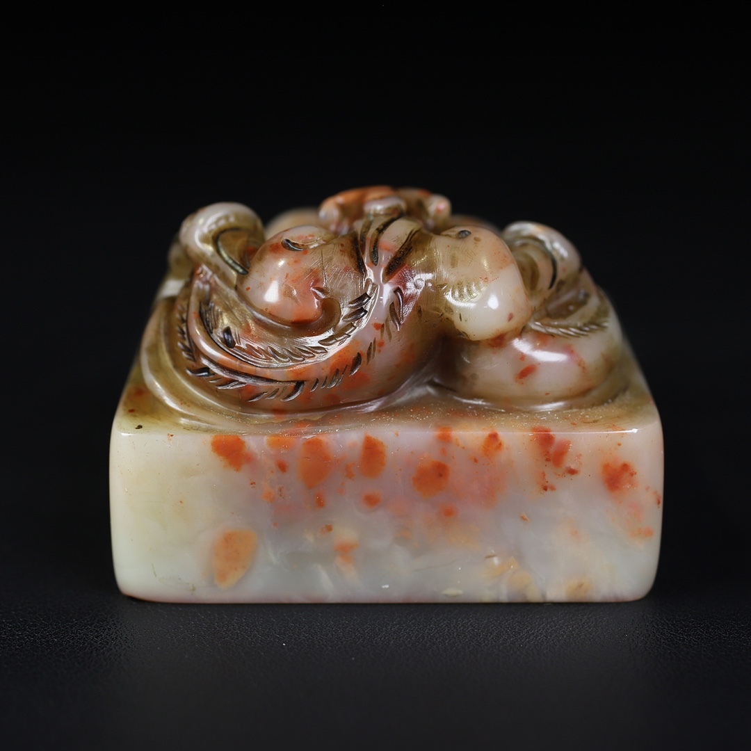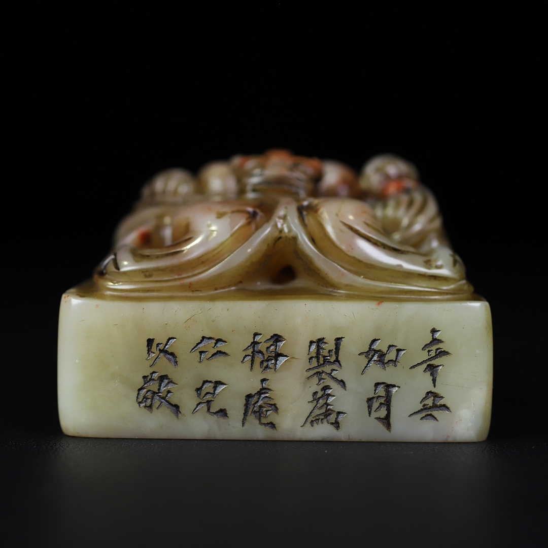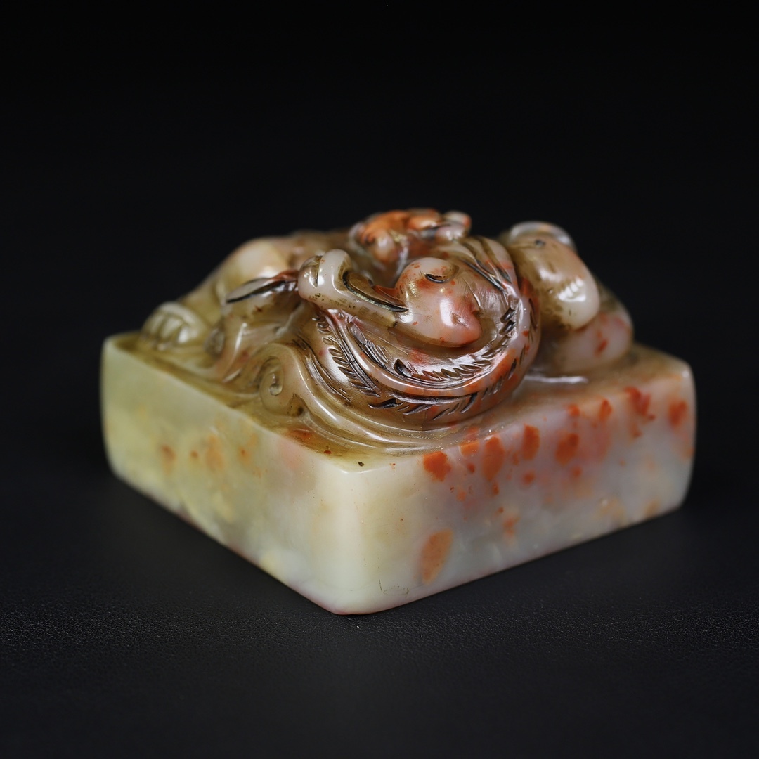 旧蔵 【清代篆刻家 鐘以敬】寿山芙蓉石 キレート龍ボタン印鑑 天然石 手彫 篆刻 古印材 極細工 中国古玩 古美術 骨董品 203-03
