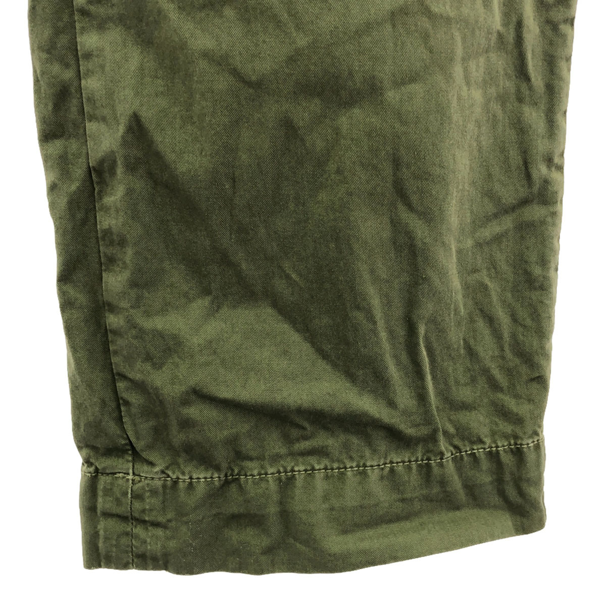 | 詳細 | ウエスト両サイドにボタンが付いており調節可能です。全体的にスレからくる若干の色褪せ、所々に点々としたシミあり。破れ等の目立ったダメージはございませんが、古着にご理解の上ご購入をお願い致します。 |