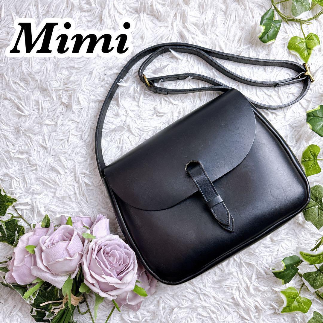 Mimi Berry ミミ 本革 レザー ショルダーバッグ ブラック 黒 フラップ