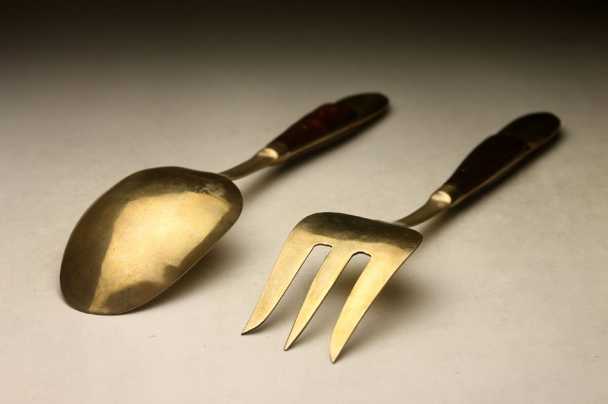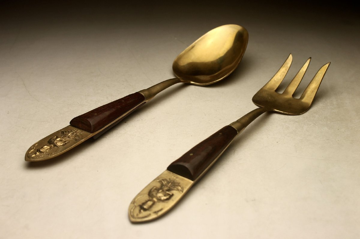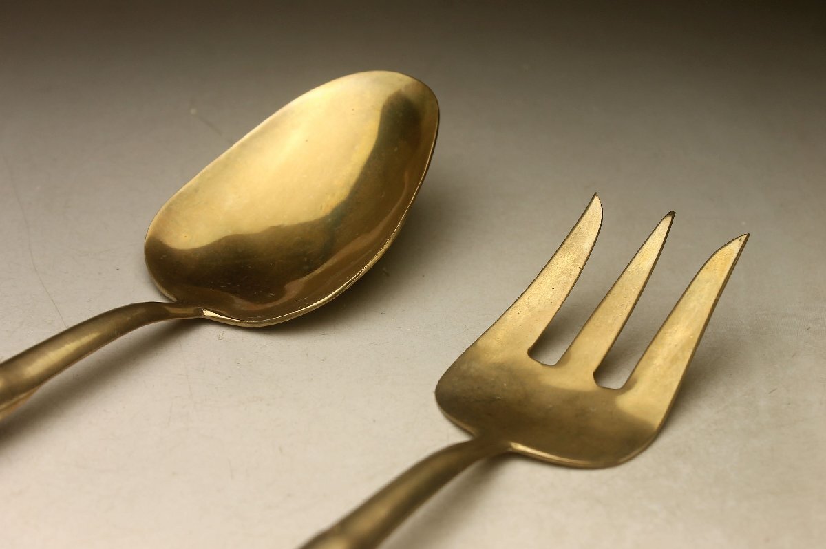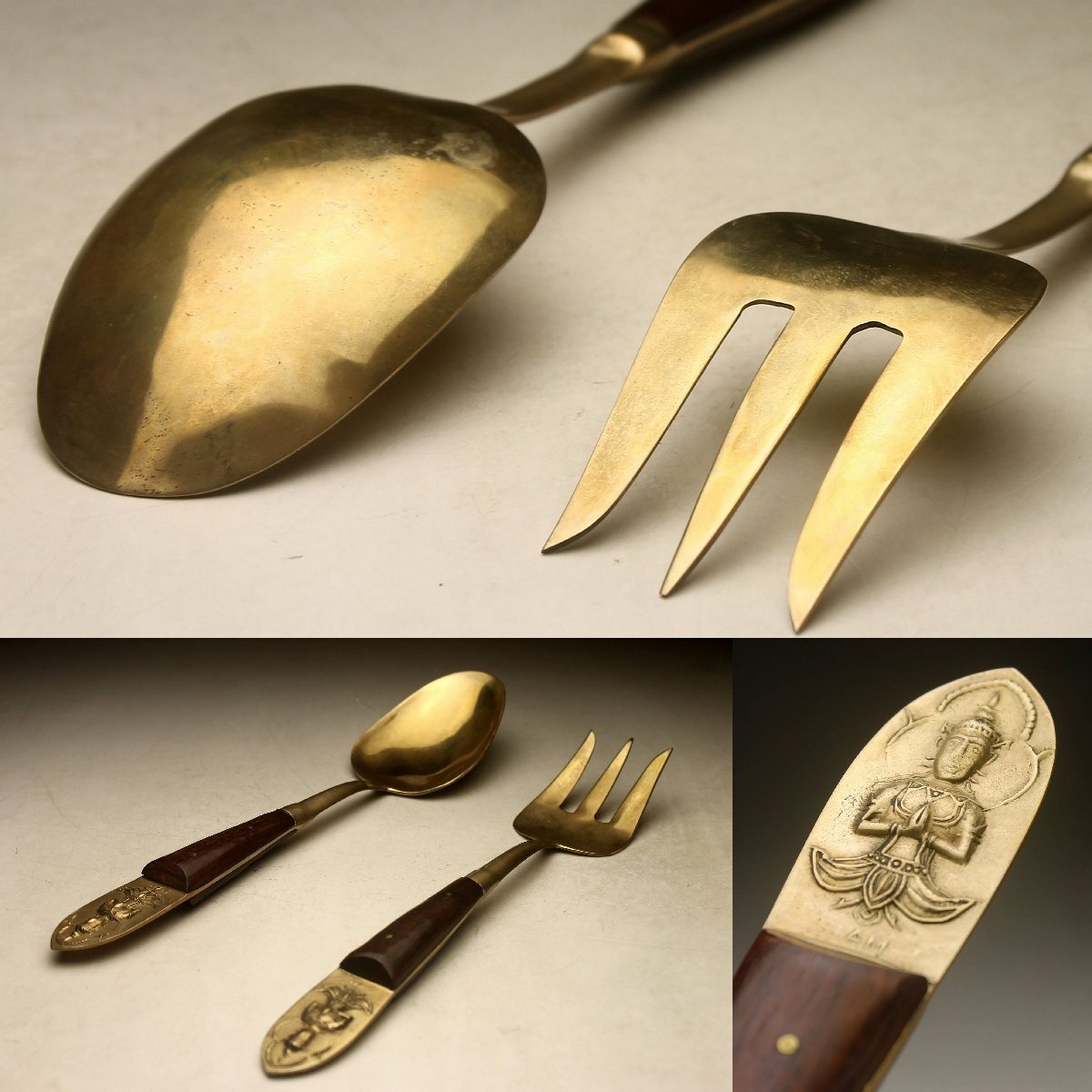 【余韻】 真鍮製 サービングスプーン フォークセット★無傷美品<同梱可>
