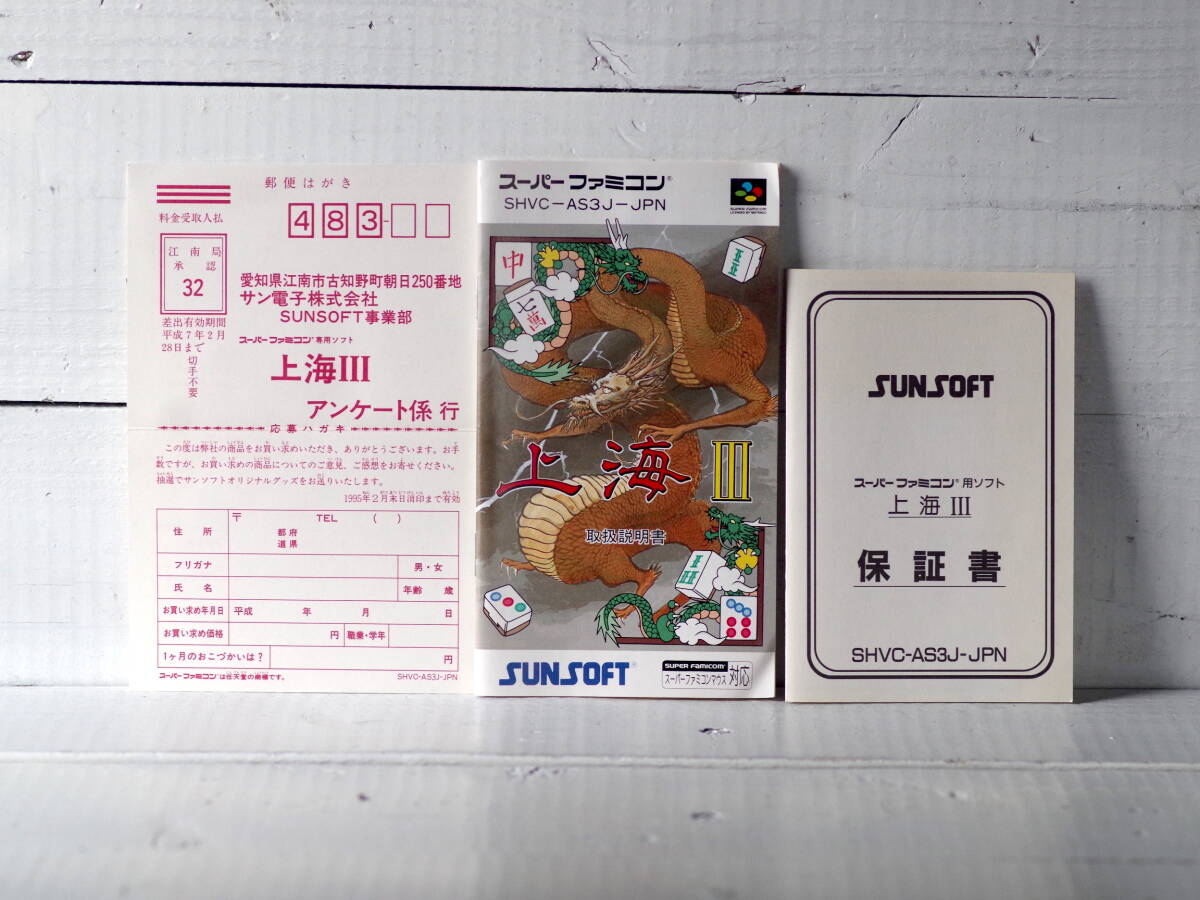 M12086【SFC】上海3 箱説明書印刷物付属 スーパーファミコン 起動確認OK! レターパックプラス発送0702